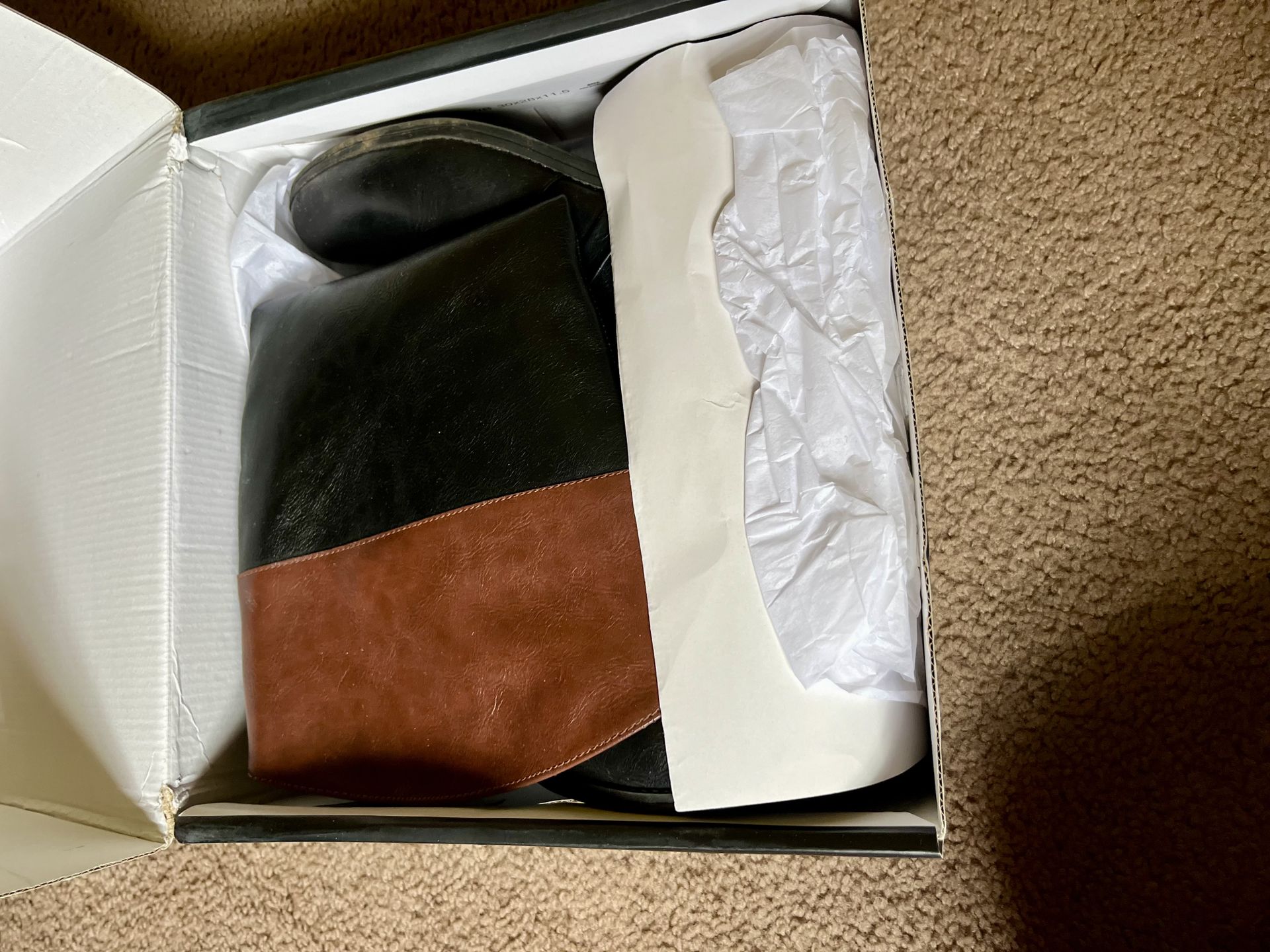 Stylish Nine West IvaniBlack boots. These are black with a cool brown two-tone top part. Has buckle details around the ankle. Worn only a few times Size 9 Original price was $89.99. Must sell moving !’