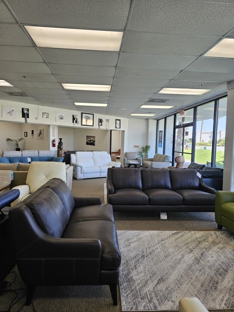 Sofa dimensions: 83" x 39" x 35" $899 100% Real leather Comfortable seats Financing available Delivery available Store display/open item Furniture store location: 68945 Perez Rd Suite 1 Cathedral City Store number: 760-534-8222 Open Wednesday through Saturday Closed Sunday through Tuesday Store Hours:11:00am to 5;00pm Leather sofa, leather loveseat, leather sofa set, discounted furniture, affordable furniture, home decor, furniture store