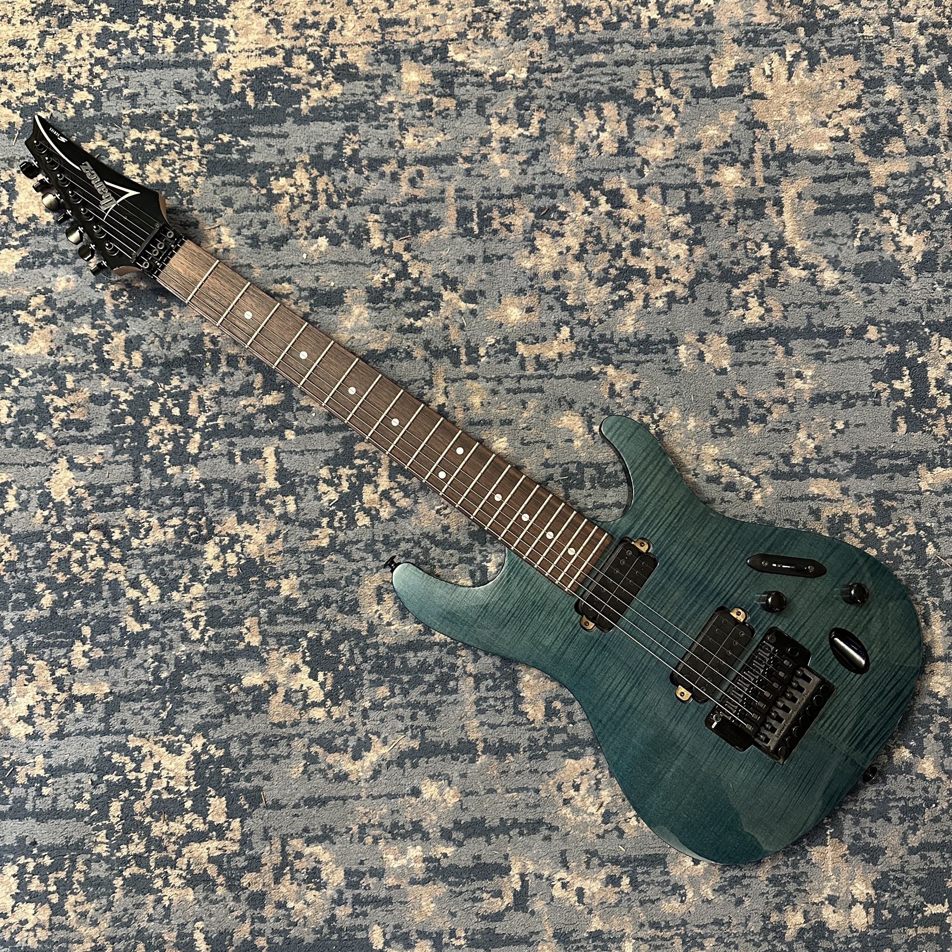 Late 90’s Ibanez model S-7420fm. He ‘FM’ stands for flame maple, which is the upgraded top. Nice rosewood neck, Floyd Rose bridge (all pieces intact, just missing whammy bar), Dimarzio pickups, etc. The body has some belt rash on the back, and a previous owner scratched his name on the back of the headstock and the plastic plate behind the tremolo (wasn’t me). Also has some small chips on the bottom side by the volume controls. I’ve edited the pics to highlight these issues, they’re more subtle in person. Thankfully the fretboard and back of the neck are both in excellent condition! I bought this out of pure curiosity for 7 string. It’s been fun but I still haven’t figured it out. Asking $600 via cash or Venmo. This is half the going price on Reverb. Open to trades/partial offer for Danelectro Baritone or 12 string (in black), Fender Champ tube amp, nice Cordoba/Gibson/Martin classical or nylon string, or possibly nice studio microphones or similar equipment.