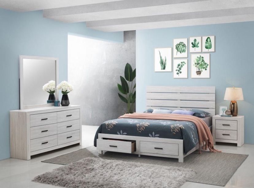 4 PC BEDROOM SET BRAND NEW IN BOX (MATTRESS AND CHEST SOLD SEPARATELY)