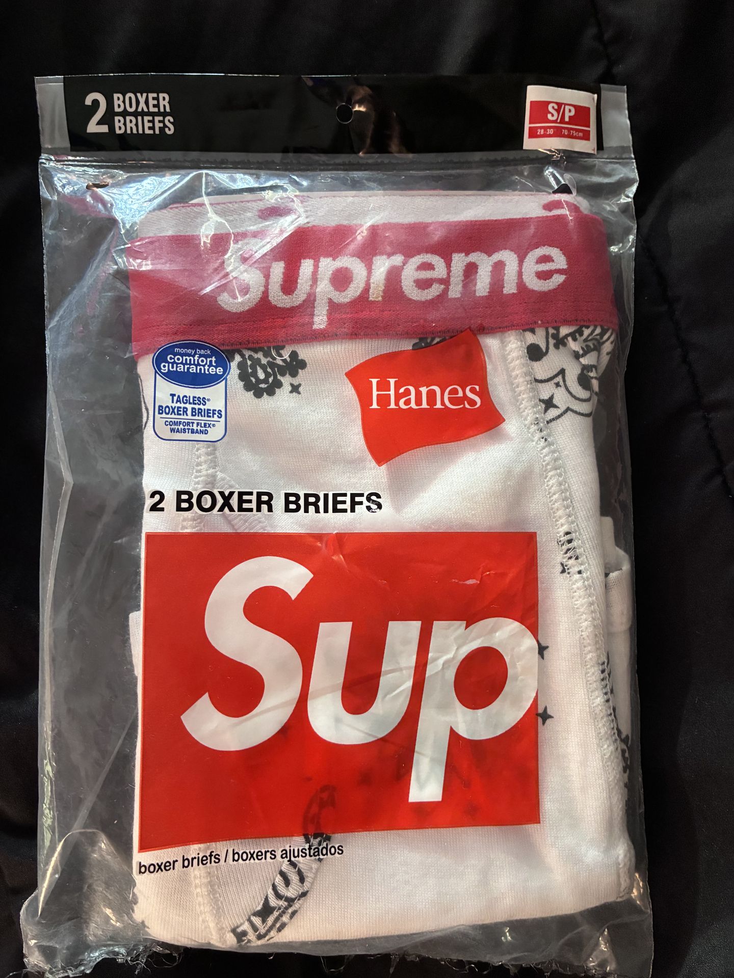 Brand new supreme bandana In white boxers in size small 2pack sealed asking 60 100% authentic