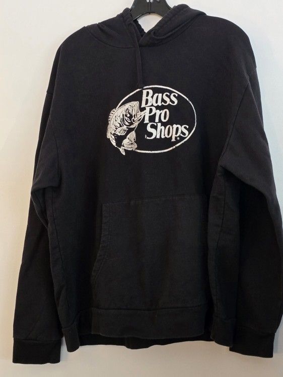 Bass Pro Shops Logo Black XL Men's Sweatshirt Hoodie Pullover Johnny Morris Used