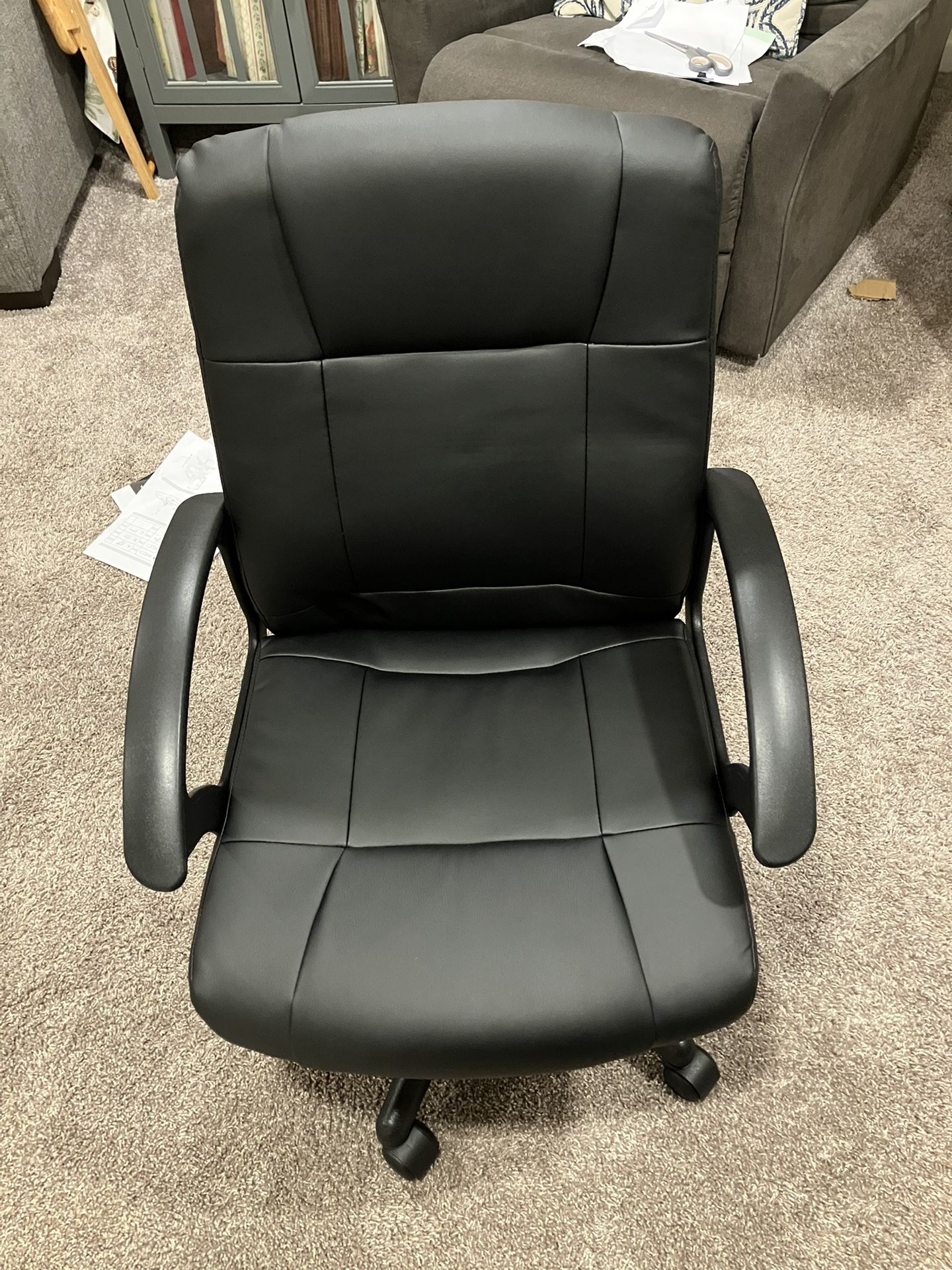 Black Leather office chair very comfortable They sell online and stores for 155 and up. I have 2 for sale at $50 each or 2 for $85 Brand new still in original carton never opened