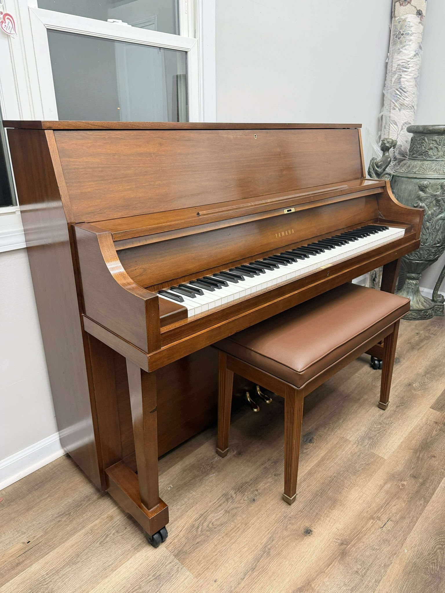 This Walnut Yamaha P22 piano is simply lovely! Yamaha is well known as one of the most pristine piano brand and this piano proves why they are exceptional! Made in Japan around the 1970s works and plays beautifully! No broken keys or strings! This is one of those piano that plays and looks great at the same time! You won’t find anything like this for the money! No crack on the soundboard! Has 3 pedals! Gonna need some tuning ! Crystal clear sound and warm bass! It worth every single penny! Retails for 3000$! In absolute stunning shape for a used piano! Barely used! Matching bench is included and we will deliver if needed for a small fee. Located in Duluth