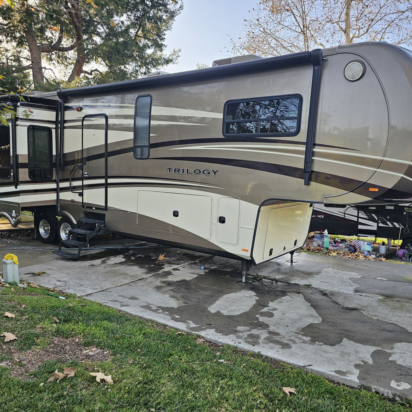 41' .This is not your usual run of the mill 5th wheel trailers ..they are like Mercedes or Rolls Royce Trailer is flawless..Just detailed Solid Cherry Hardwood Cabinets Fiberglass walk on roof...never replace, seal or worry about leaks .roofs today on 40' units cost upwards if 10k Computerized hydraulic leveling system 2 fully automatic enclosed awnings Drop frame construction..Huge storage with additional storage compartments under belly floor 8 foot high ceilings with all power ventilation fans Thetford Ceramic mascerator toilet Huge walkin Fibeglass Shower 2 ac units Main Bedroom features a huge king bed and Walkin huge closet with dresser and room for a wash and dryer ( all hook ups installed) All aluminum construction with heated tanks Giant kitchen center island 2 aluminum sinks Sold counter tops Factory Cordless Dyson Vacumne kitchen stove convection/oven with ceramic backsplash Fireplace Full Body Paint .no decals Shown by appointment only Unit is 100% I am an rv technician by trade..if ad is up its available.dont ask dont waste my time never towed! More pics available on request! Transportation available These are designed for full time living ..do not compare to other low end units ..theres a world if other differences too much to list here! I will not respond to offers online!.if you can't come to see it you can't buy it ! Thanks for looking! 41' .This is not your usual run of the mill 5th wheel trailer ..it is like a Mercedes or Rolls Royce Solid Cherry Hardwood Cabinets Fiberglass walk on roof...never replace seal or worry about leaks .roofs today on 40' units cost upwards if 10k Computerized hydraulic leveling system 3 fully automatic enclosed awnings Drop frame construction..Huge storage with additional storage compartments under belly floor 8 foot high ceilings with all power ventilation fans Thetford Ceramic mascerator toilet Huge walkin fiberglass Shower 2 ac units Main Bedroom features Sleep # king bed and Walkin huge closet with dresser and enough room for a washer and dryer ( all hook ups done) All aluminum construction with heated tanks Giant kitchen Island dual sinks Factory Cordless Dyson Vacumne stove convection/oven Fireplace Full Body Paint .no decals Shown by appointment only Unit is 100% I am an rv technician by trade Never been towed on highway Must sell asap ..make an offer! Reduced price from $39500 to $34974