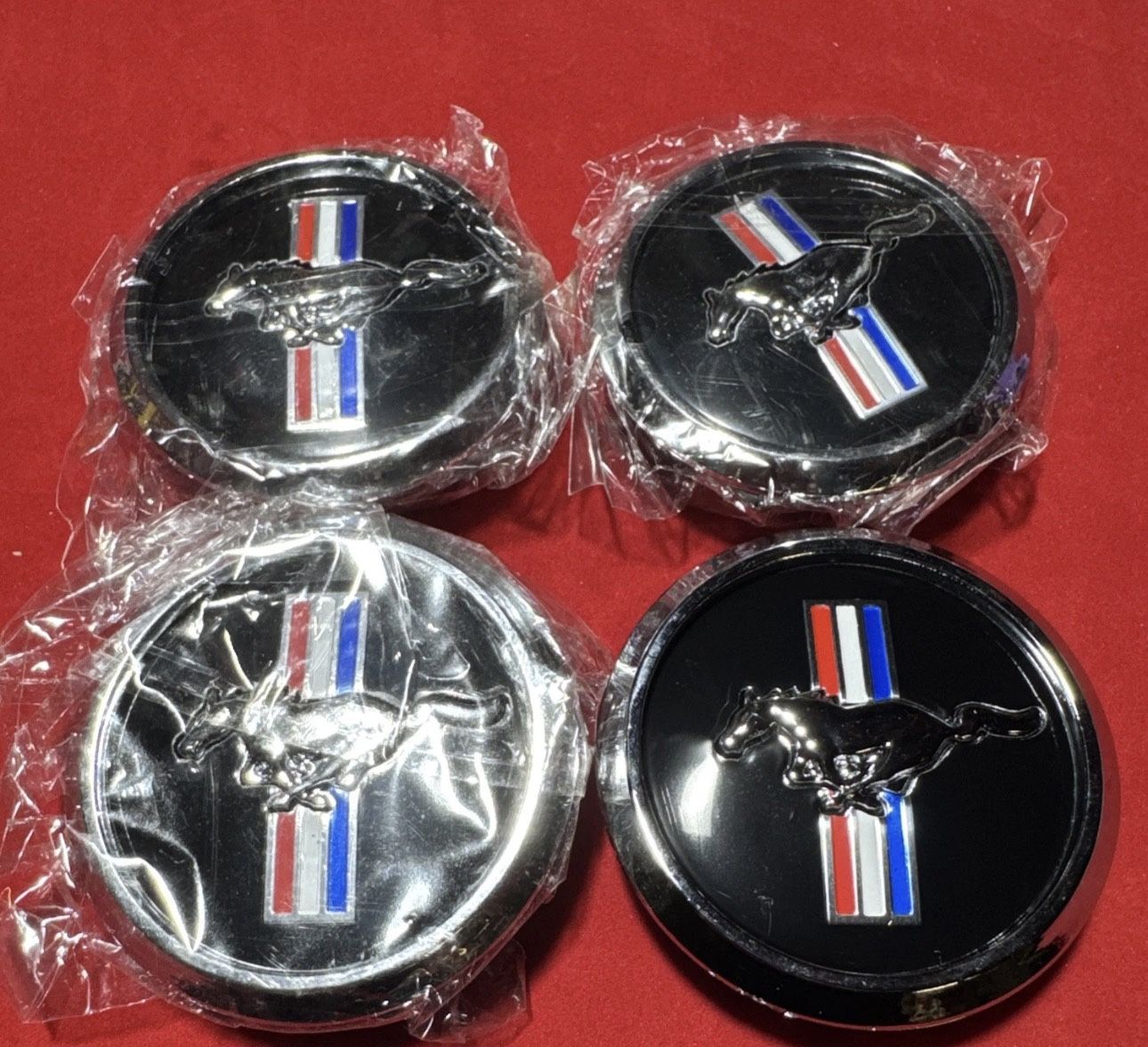New 4- 68mm Car Wheel Center Caps Cover Chrome Edge Running Horse for Ford Mustang Pick up Northridge
