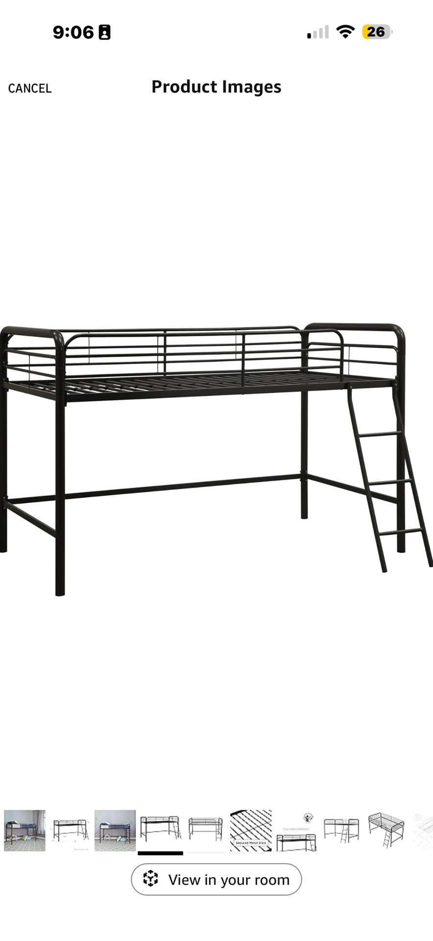 Twin sized loft bed frame can also fit a twin xl. Bought from Amazon and only used it for a couple years so it’s in good condition. Very easy to put together and take apart. I have it taken apart right now but I have all the pieces and hardware all together and it’s not missing anything. Mattress not included!