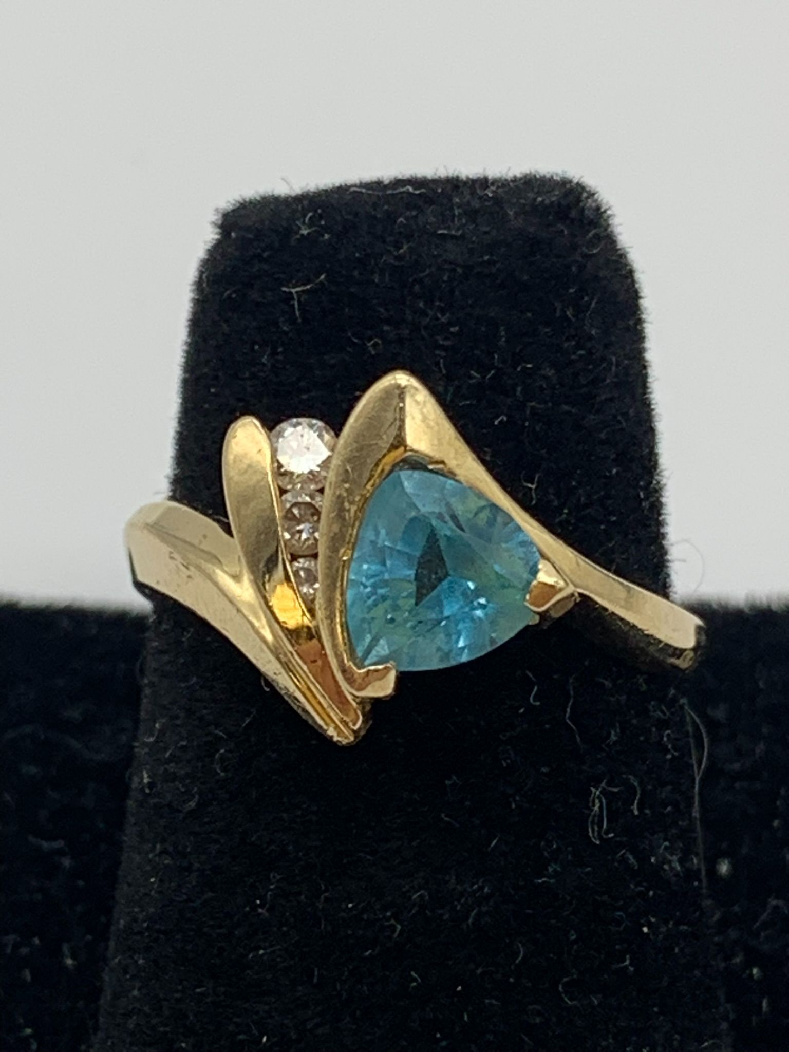 14k 3.6g size 5 gold ring with diamonds & blue stone. **LAYAWAY & FINANCING OPTIONS AVAILABLE**