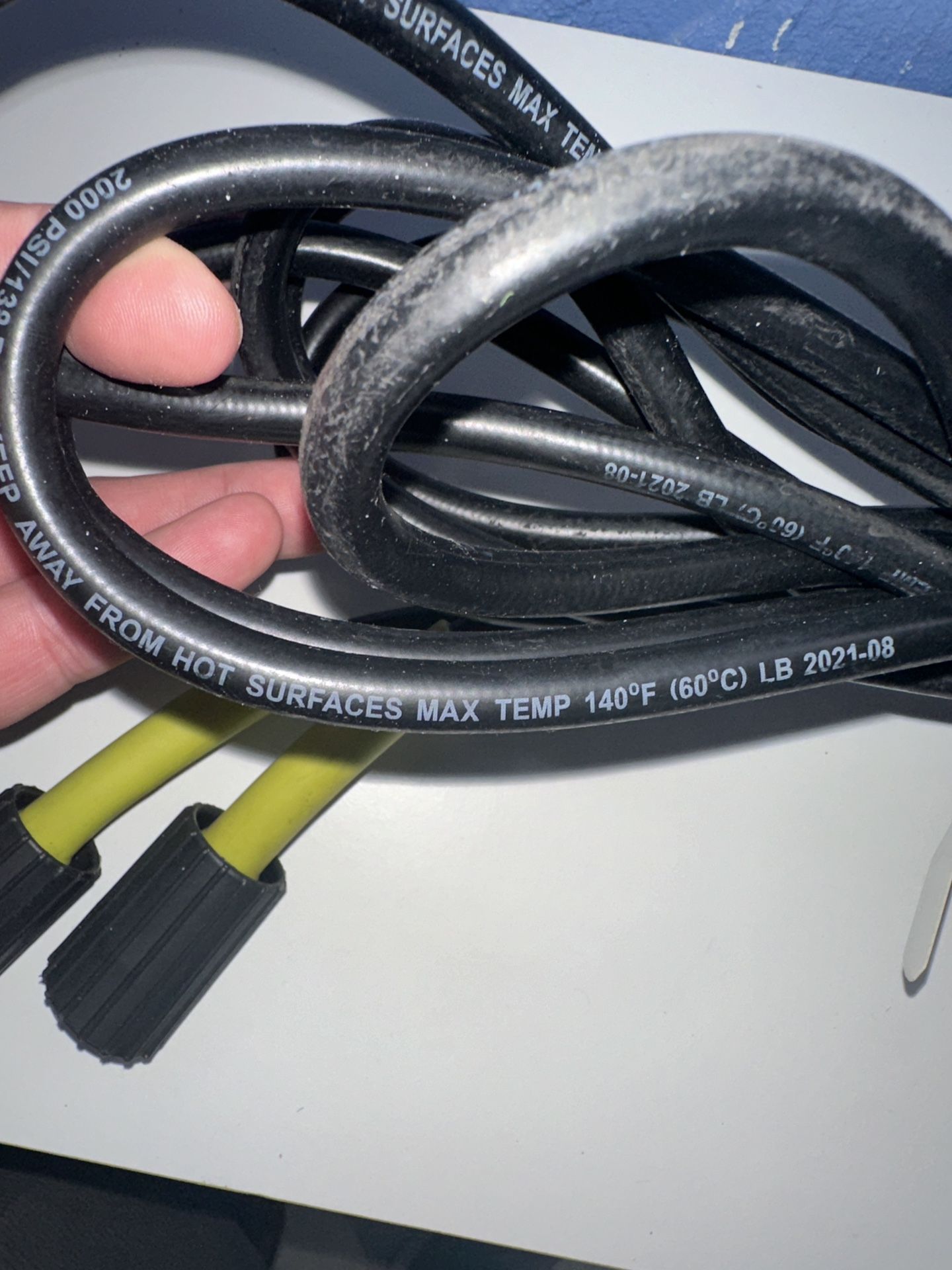 The Ryobi high-pressure washer hose is a durable replacement hose designed for use with 2000 PSI electric pressure washers and other compatible pressure cleaning systems. Built to handle demanding cleaning tasks, this hose delivers reliable performance, flexibility, and safe operation for residential and light-commercial pressure washing applications. Key Features 💧 High-Pressure Rated: Engineered to withstand up to 2000 PSI (138 bar) operating pressure, making it ideal for medium-duty cleaning tasks. 🌡️ Temperature Tolerance: Safe for use with water up to 140 °F (60 °C), accommodating hot water cleaning jobs without compromise. 🔌 Standard Connectors: Equipped with common M22 quick-connect fittings for easy attachment to pressure washer guns, wands, and pump outlets. 🔩 Durable Construction: Reinforced hose assembly built for flexible handling while resisting wear under high pressure and repeated use. 📏 OEM Compatibility: Works with many Ryobi electric pressure washer models that use a 2000 PSI hose (verify fit to ensure compatible length and connector).