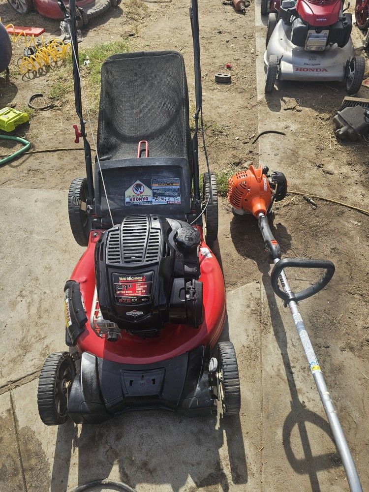 Yard machines lawn mower starts on first pull and runs great comes with Echo gt-225 weed eater both work great and ready to use