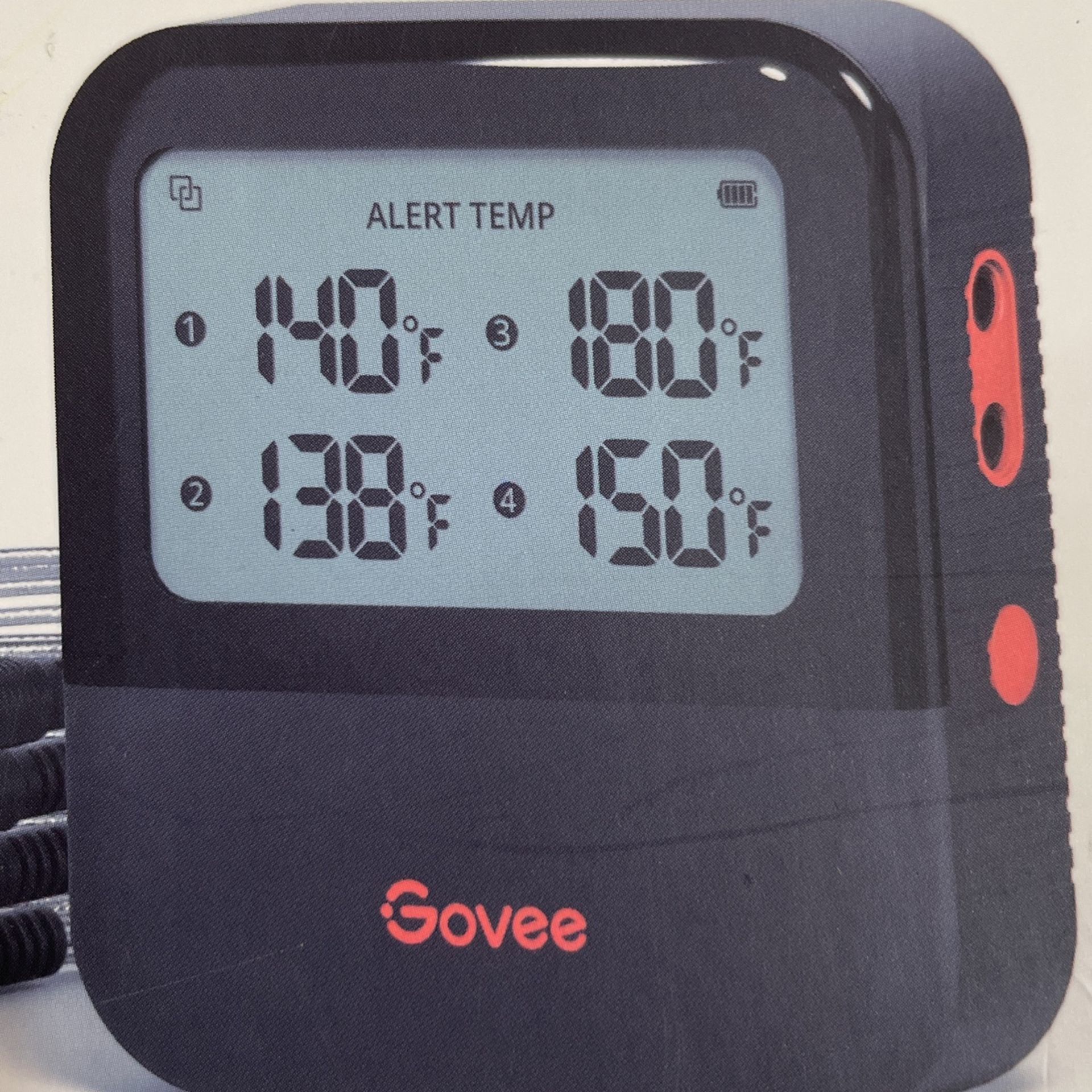 Govee smart meat thermometer. Battery operated. Connects via bluetooth to your phone on the Govee Home app. Able to connect 4 probes!