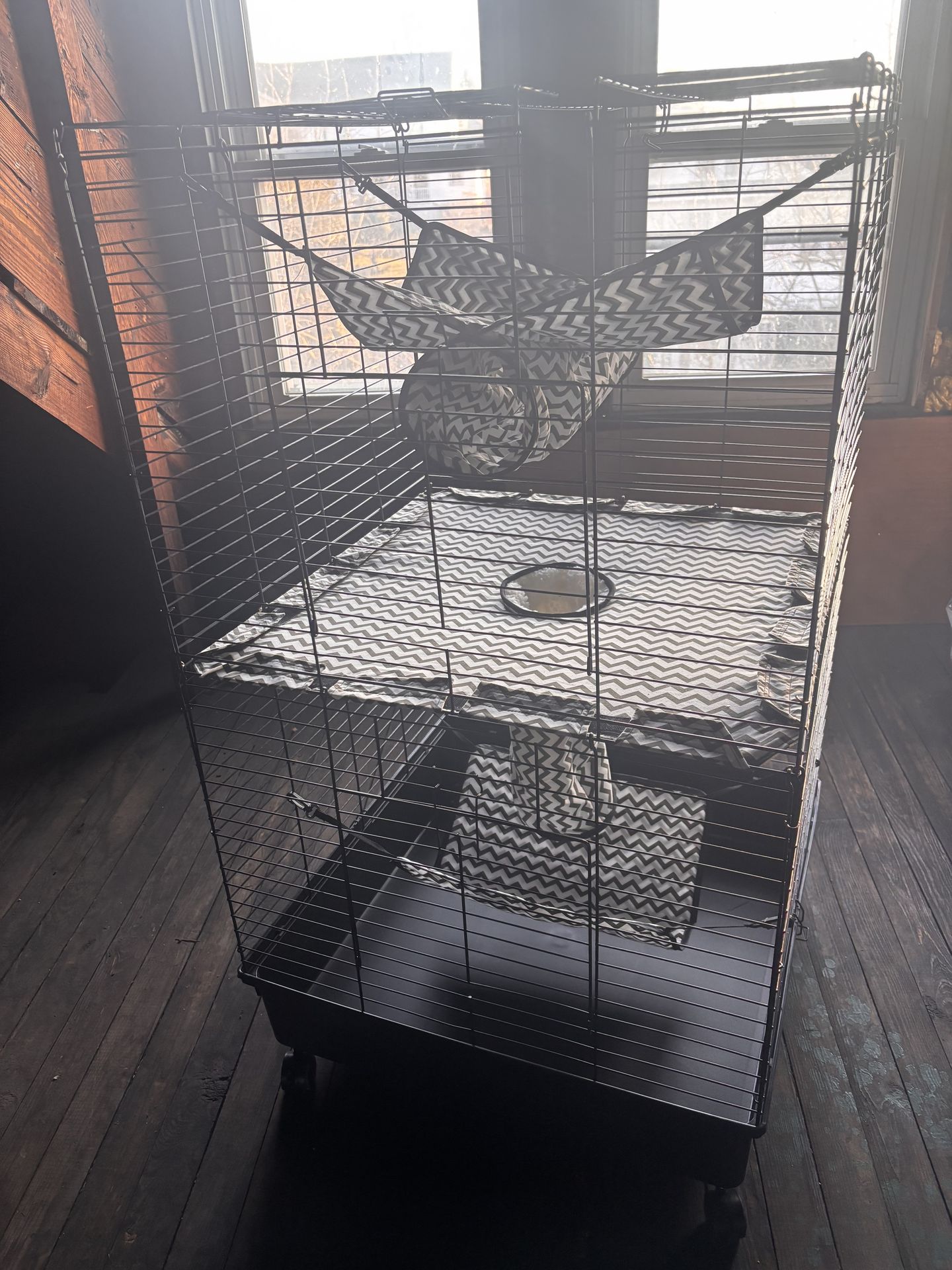 Selling a large metal 2-level cage, perfect for ferrets or other small animals. Brand new condition. Features: • Durable metal frame • Two spacious levels • Includes hammocks • Rolling base for easy movement • Easy to clean Provides plenty of space and comfort for your pets. 💲 Price: $190