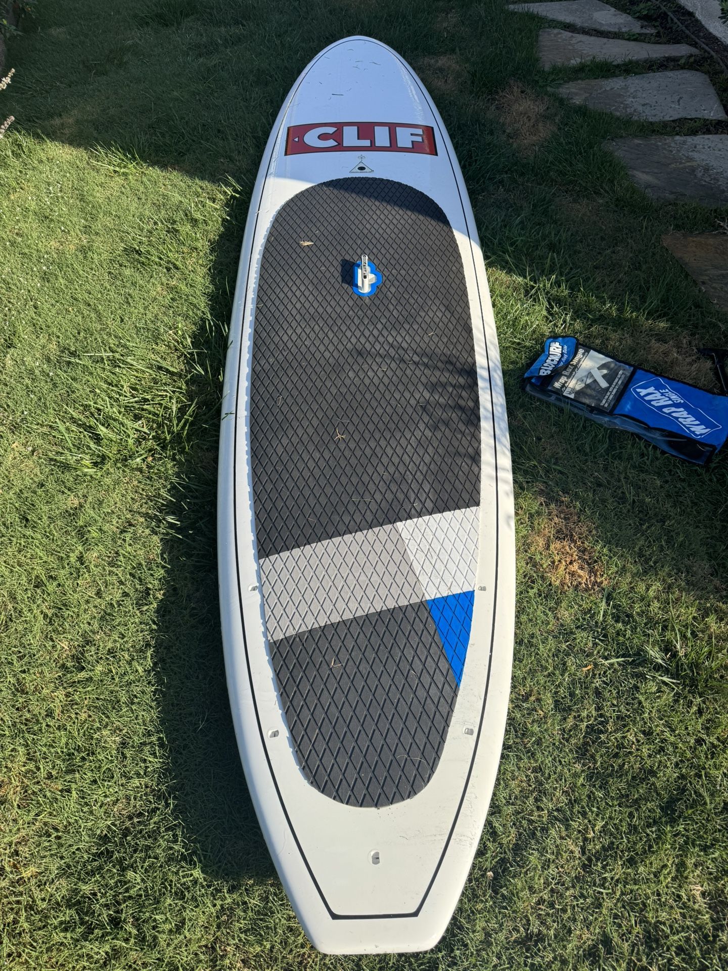 Never used. 11.5 feet. Comes with strap for roof of car as well as the paddle. Perfect beginner board given width and length.
