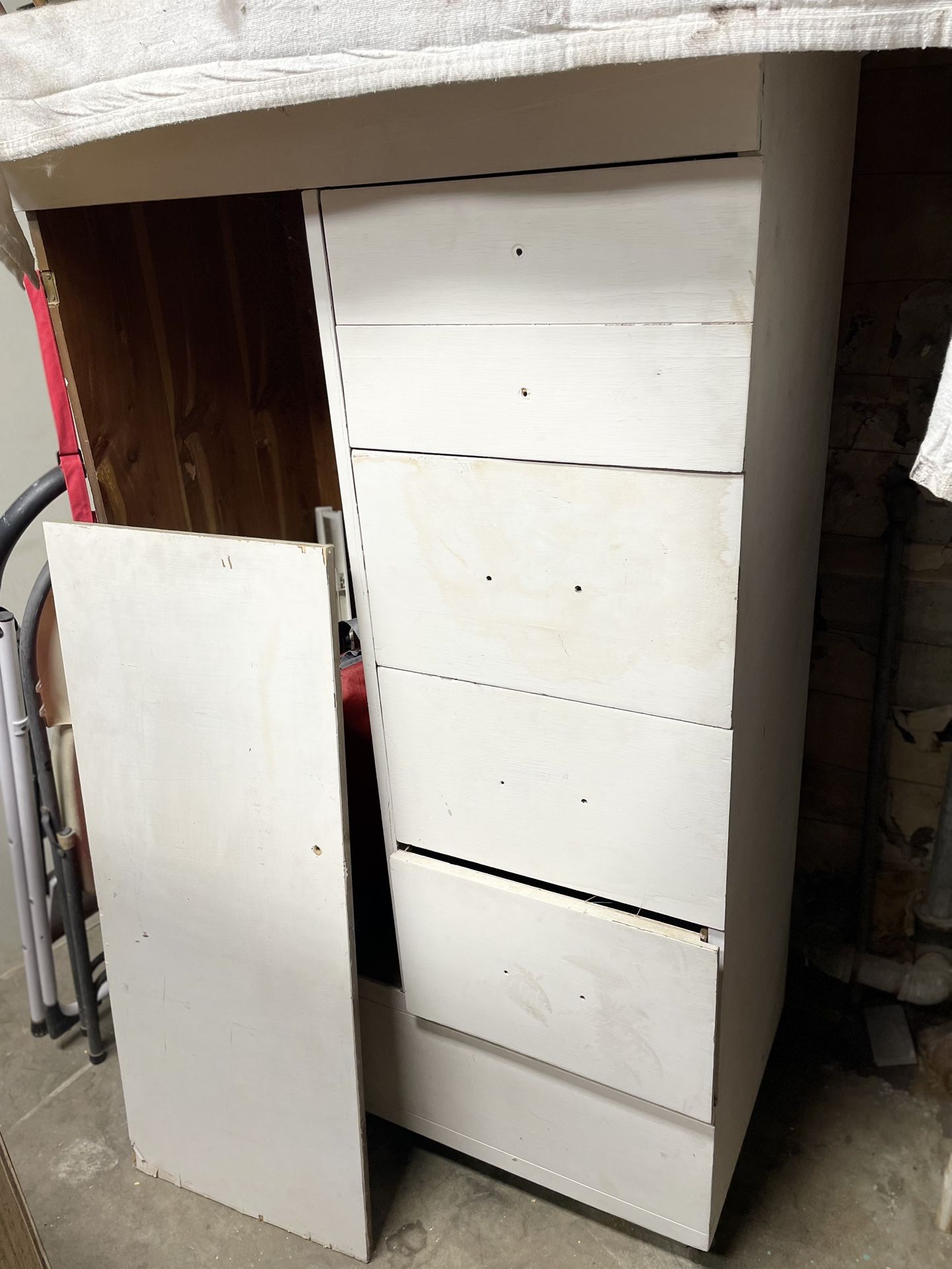 Bundle pieces for sale Perfect for you furniture flippers Antique mid century wardrobe solid wood Dresser is part wood and part particle wood Pick up only