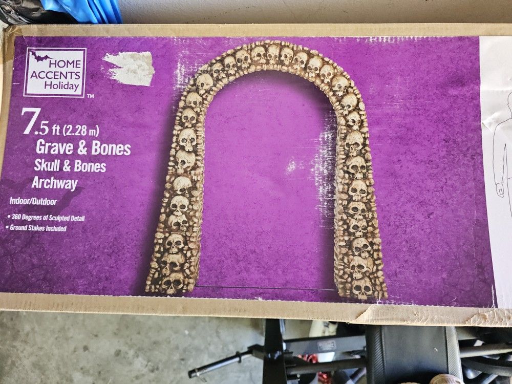 Brand new, never opened Home Accents Holiday Grave & Bones Skull Archway — 7.5 feet tall. Perfect statement piece for Halloween yard or party décor! • Indoor/outdoor • Ground stakes included • Original packaging • Ready for spooky season 🎃 $150 OBO Local pickup (Minneola)