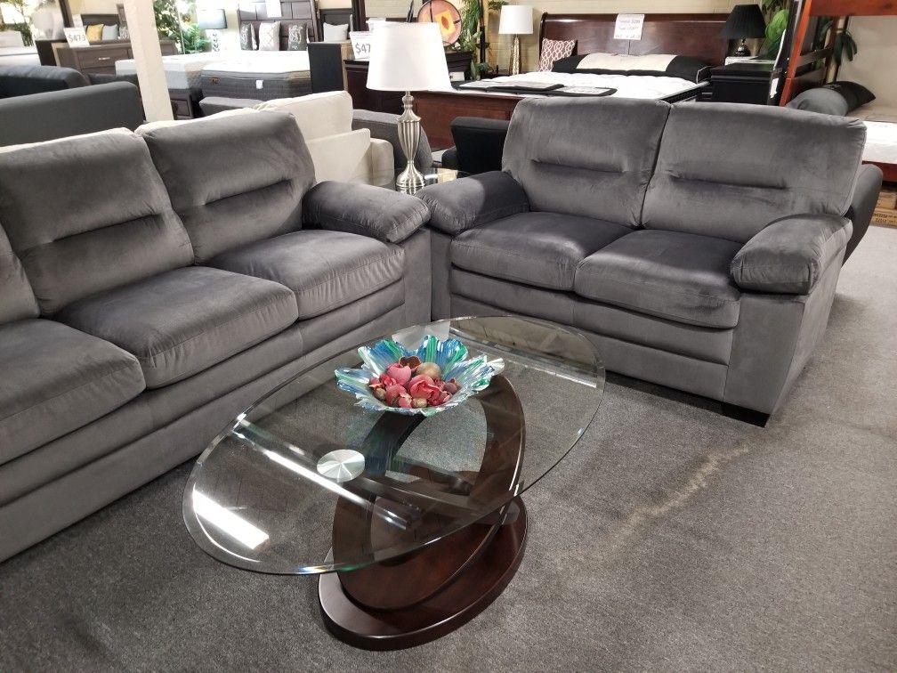 Brand New Gray Linen Sofa + Loveseat 2PCs Set