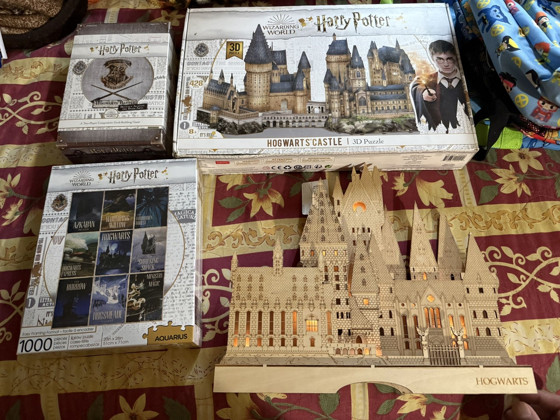 Harry Potter Collection Hogwarts Battles Defense Against The Dark Arts Board Game-30$ 1000 pc Jigsaw Puzzle-30$ Hogwarts Castle 3D Puzzle-30$ Light up Hogwarts Castle-15$