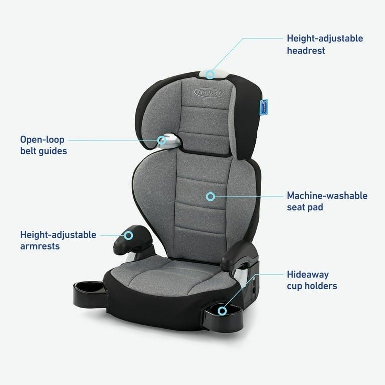 Product details Graco TurboBooster 2.0 Highback Booster Seat, Declan Helps safely transport your big kid from 4-10 years old, from 40-100 lb and up to 57 inches tall Graco ProtectPlus Engineered: a combination of the most rigorous crash tests that helps to protect your child in frontal, rear, and rollover crashes; additional testing based on the New Car Assessment Program and for extreme car interior temperatures The boost your child will love 2-in-1 seat easily converts from a highback booster to backless booster for years of use Height-adjustable armrests and hide-away cup holders will help keep your child content on the road Machine-washable seat pad for easy cleanup EPS, energy-absorbing foam for effective impact management Fully adjustable headrest keeps your growing child secure on all of your journeys together Open-loop belt guides help correctly position your vehicle seat belt
