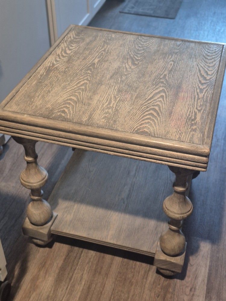 Stain on one look at pictures. Very strong and sturdy no dents or scratches set of 2 tables