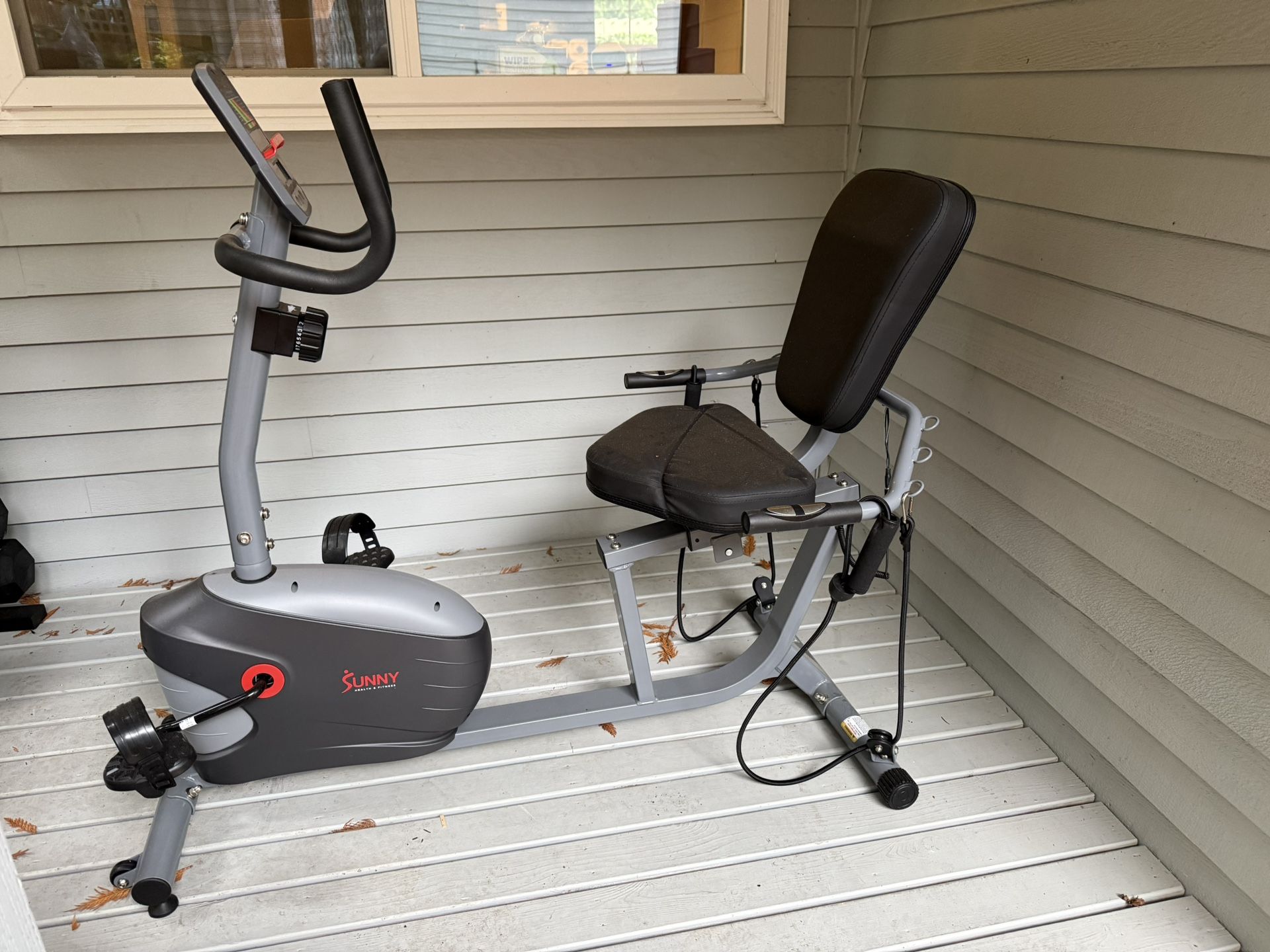 Sunny Health & Fitness Smart Heavy-Duty Recumbent Bike w/Wide Cushioned Seat & Back