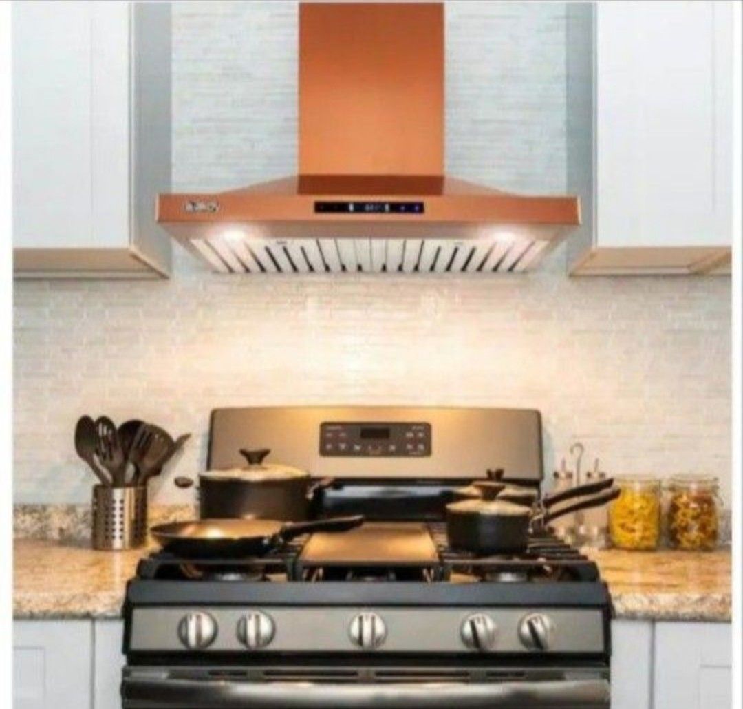 30" COPPER WALL MOUNT OVEN HOOD WITH TOUCH CONTROLS. RH0406 RETAILS FOR $551.00