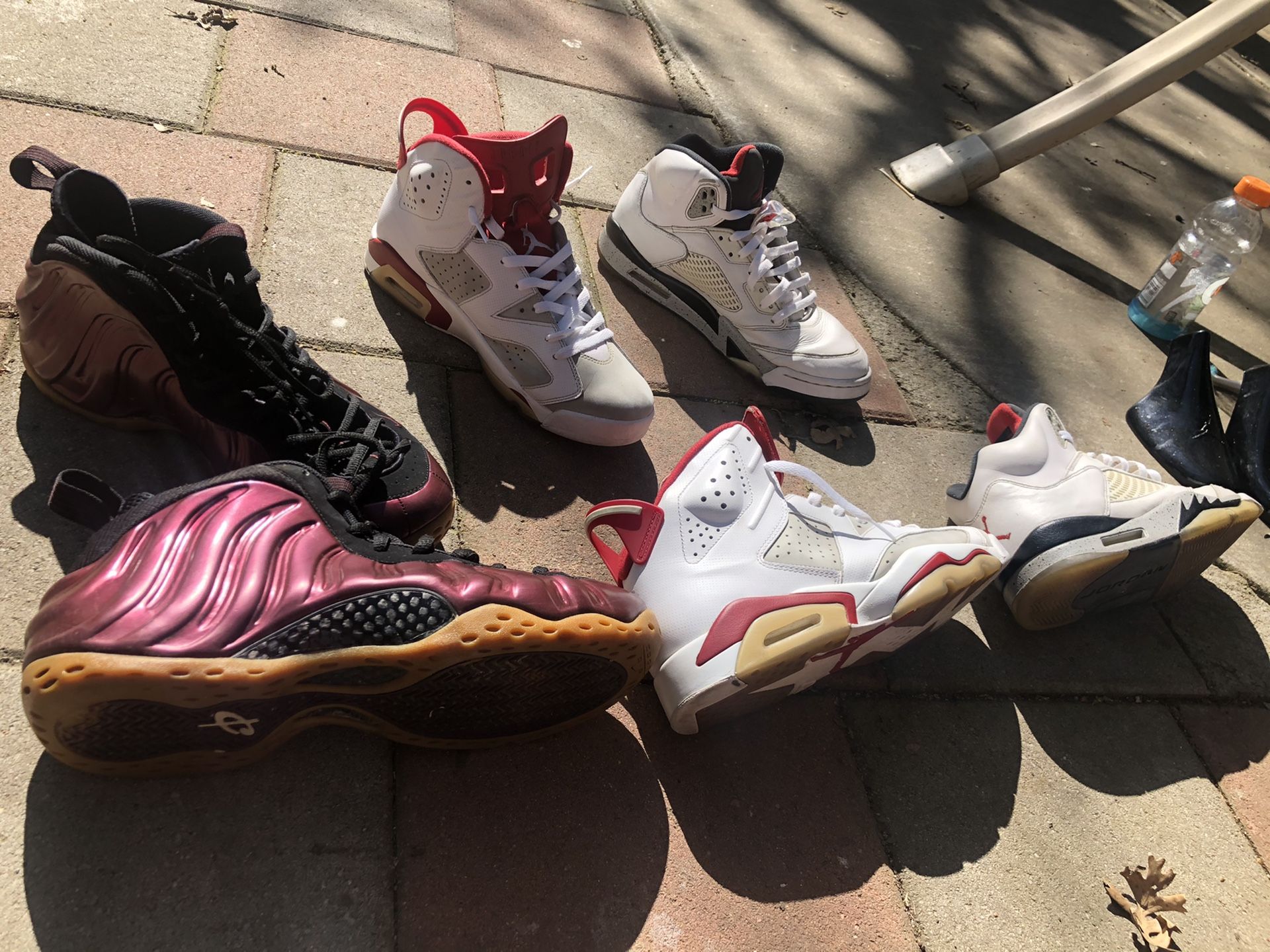 Foams night maroon (sold) Alternate 6s size 11 90$ White cement 5s size 11 50$ I’ll plug both Jordan’s for 130 $