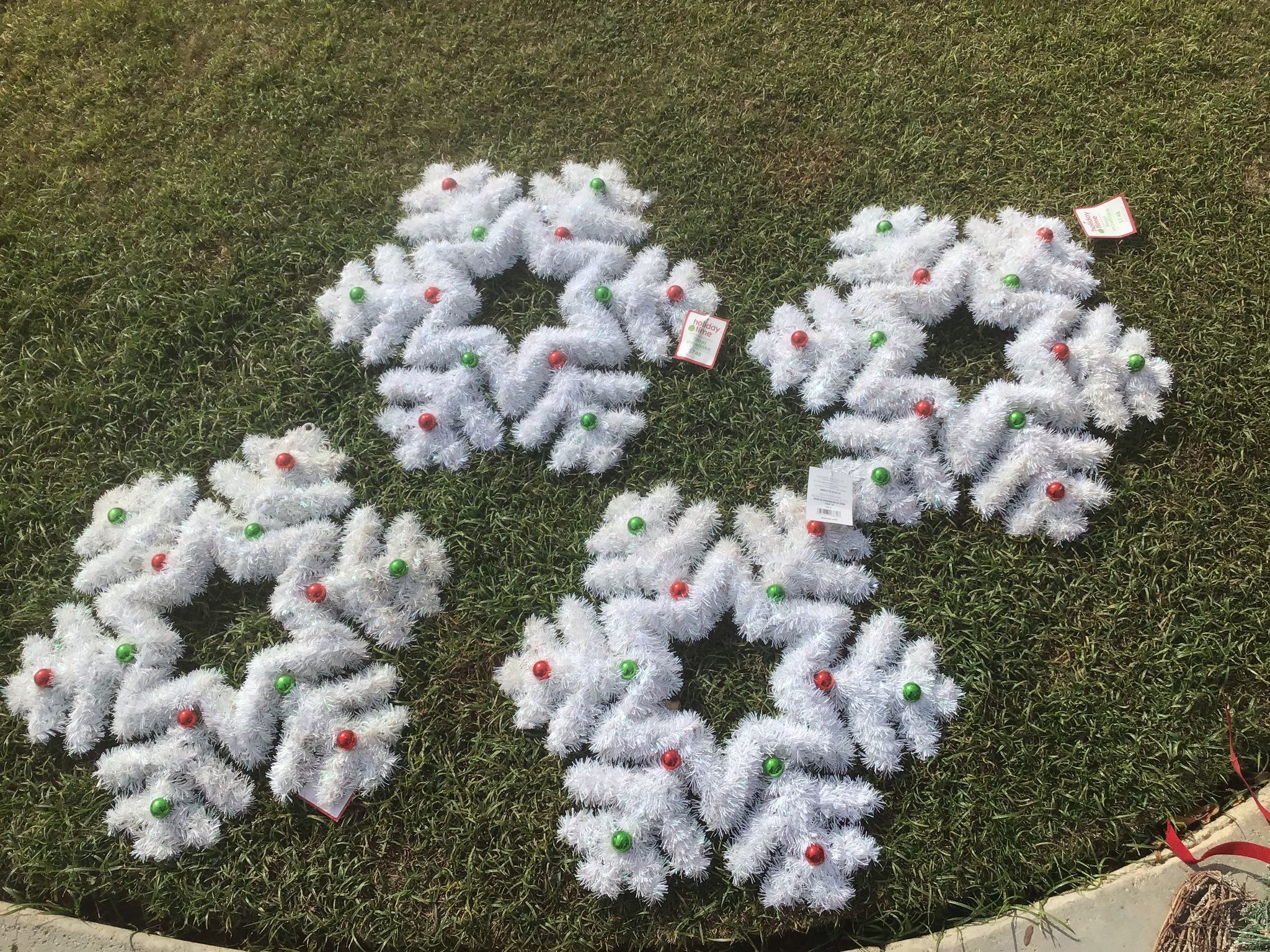 New, been in storage. White with green/red balls. Indoor/outdoor decor. Paid $8? each NW pickup only, Olive Drive and Calloway area.
