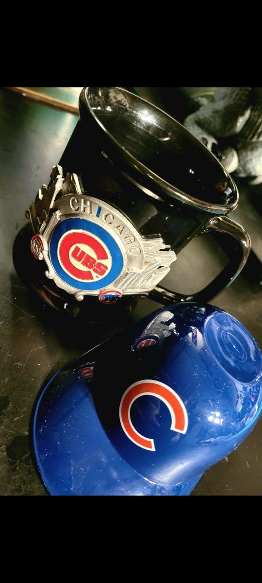 Chicago Cubs: mini-helmet and (never used) ceramic mug, 3-D metal logo, firm.