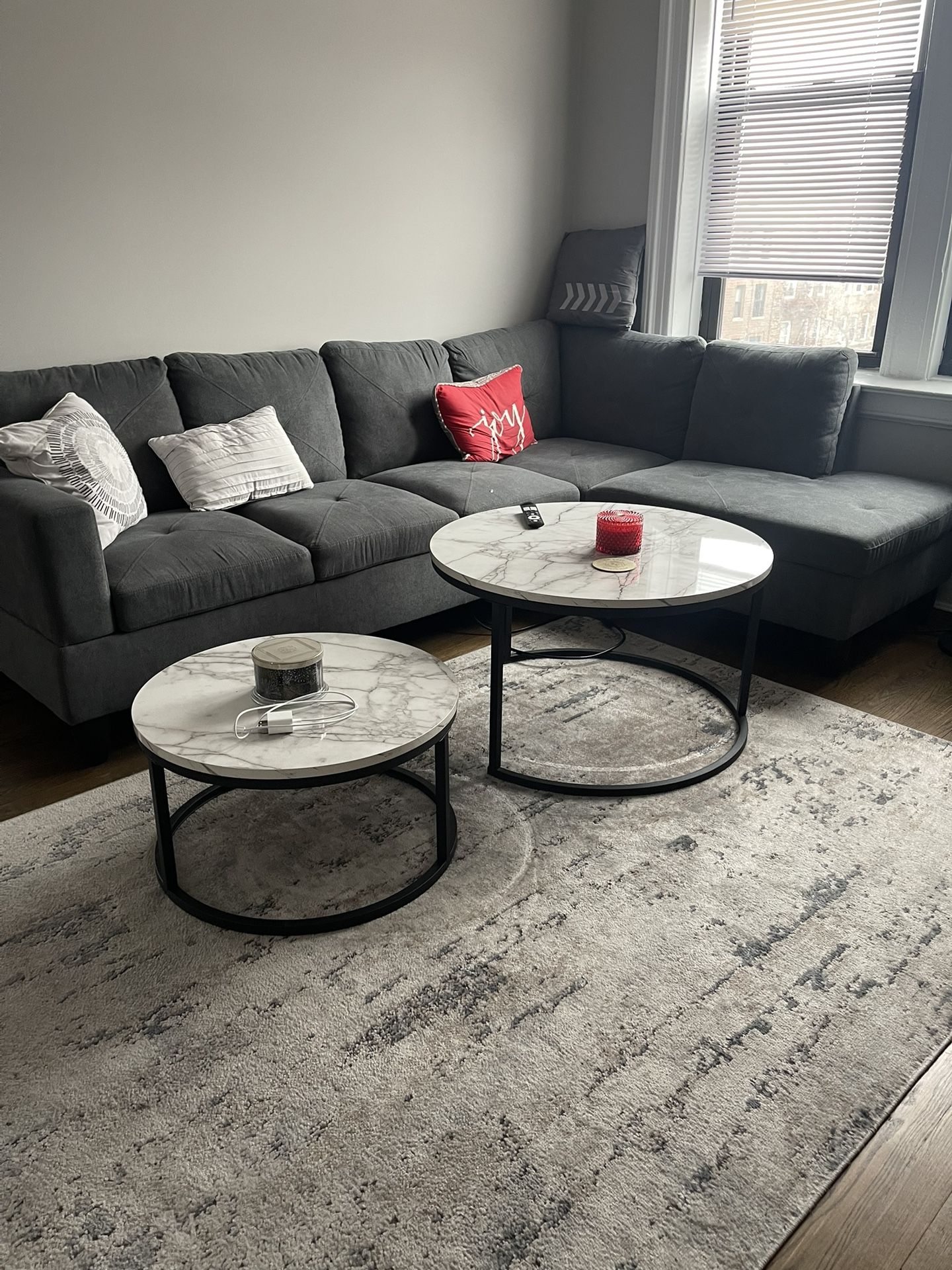 Dimensions: a) Big Table: 18”H x 31.5”W b) Small Table: 13”H x 23.5”W Available: Late May - Early June