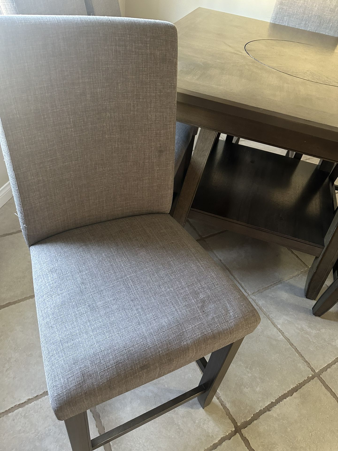 Brown Dinner table with 6 chairs 48x48 in side to side 36 in tall With center that spin