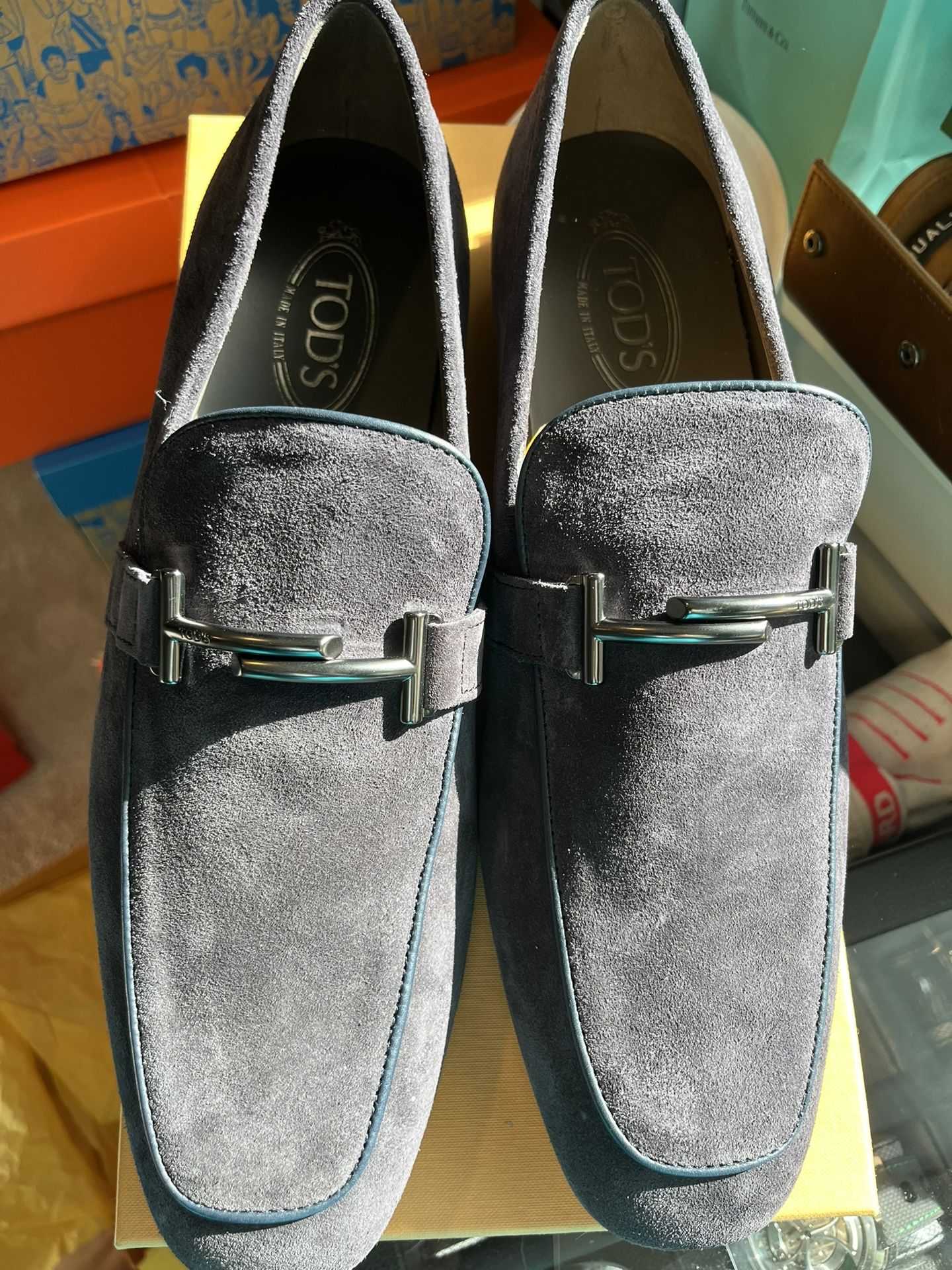 Never worn new, tods designer dress shoes. Brand new blue suede. Top luxury brand great shoes. Retail price $995