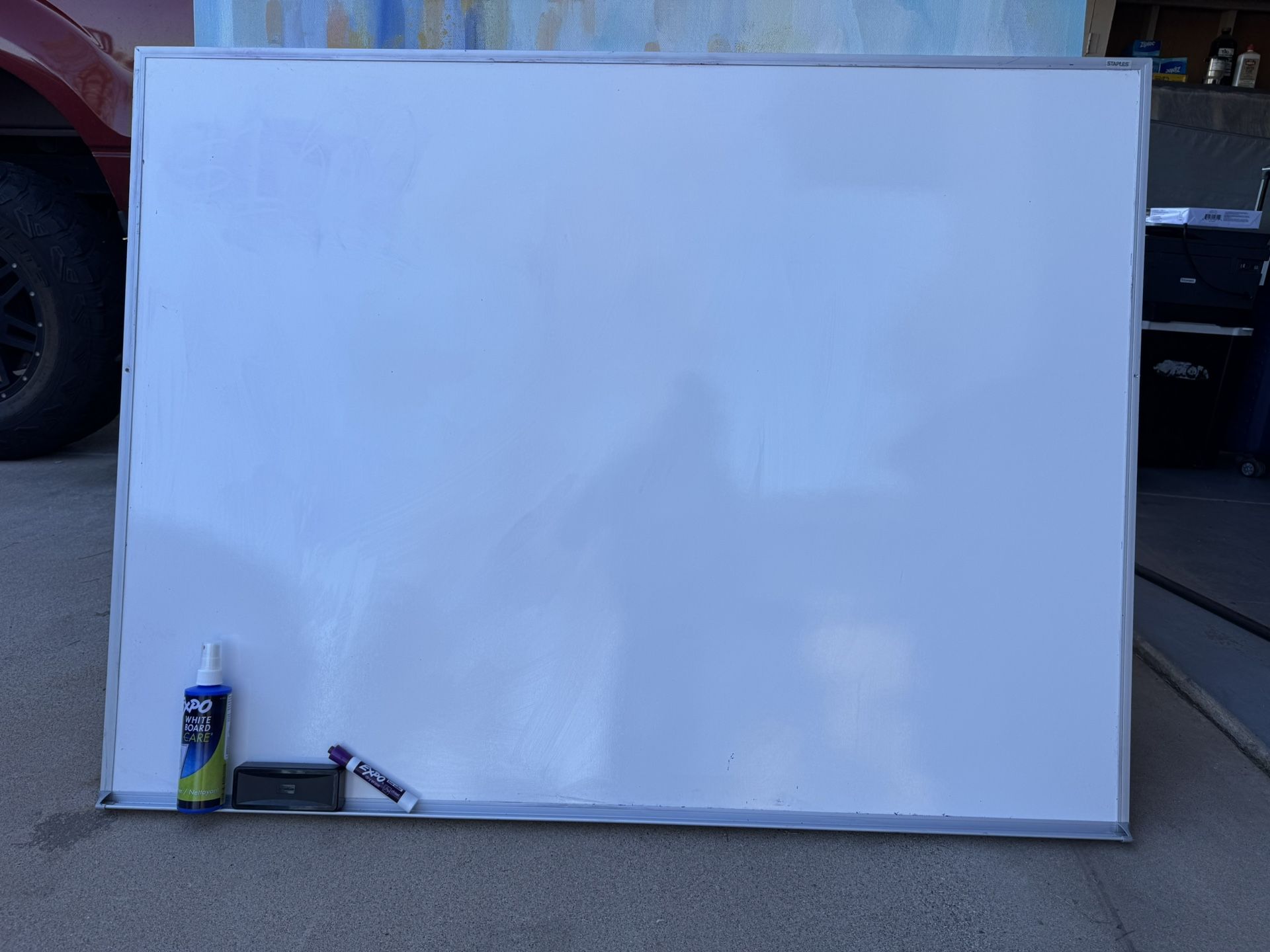 48x36 large, wall-mounted dry-erase whiteboard with a silver aluminum frame. Please only message me if you are interested in negotiating a decent price and are willing to pick up. Happy Holidays!