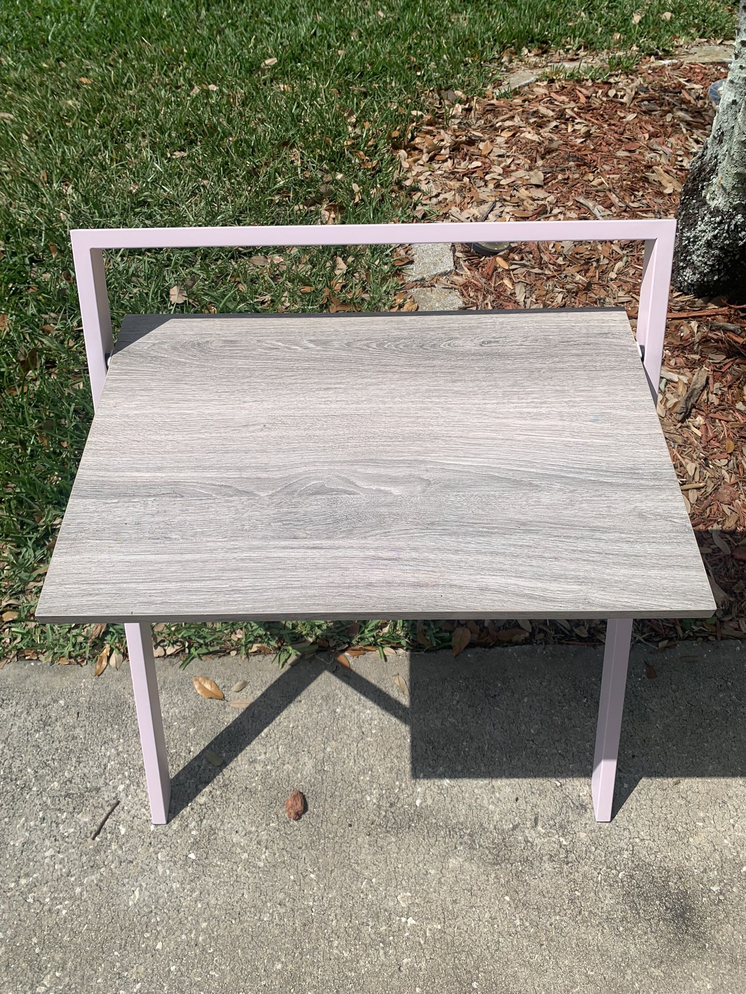 Nice desk for kids. One pink and one blue. Metal frame with gray wood top. It folds. $20 each or $35 for both. No damage, hardly used