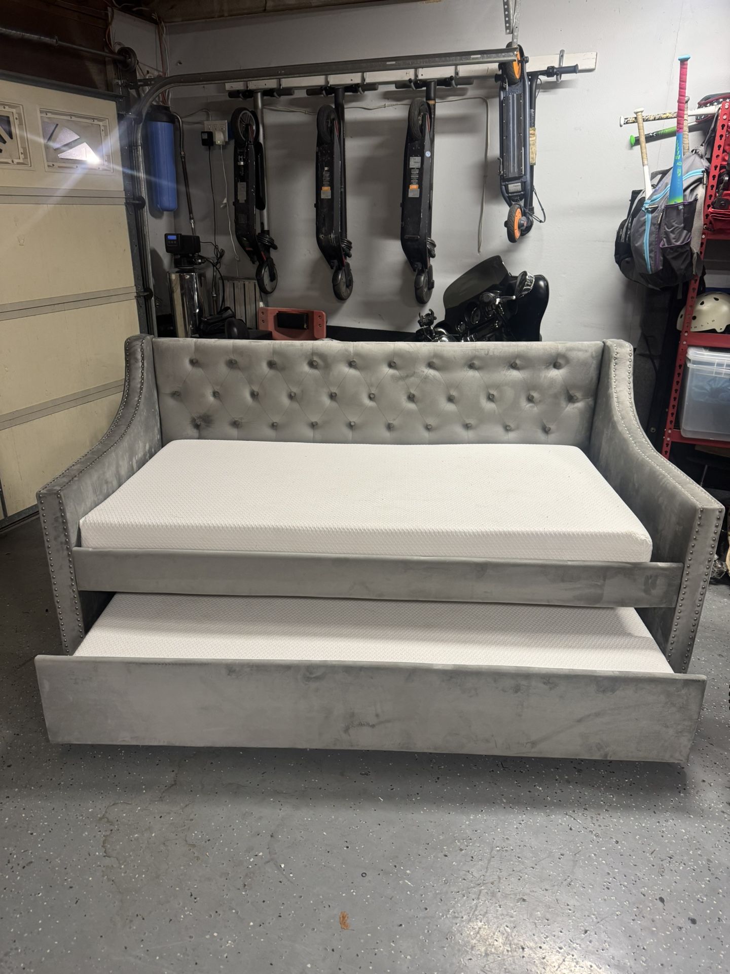 Selling a very nice twin trundle bed with mattresses. Good condition.