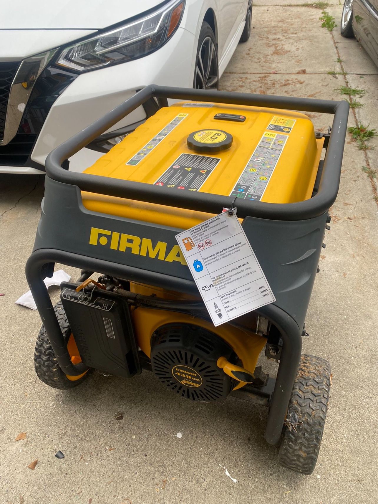 Selling my Firman Dual Generator Nothing wrong works good. No longer need it for my food truck . The Firman H07552 is a 9400 watt 50A powerhouse. This is an electric start 74 dB monster that will run for 12 hrs. on its 8 gal. fuel tank and is California emissions certified. Our Max Pro Series 439cc engine runs cool and efficient thanks to its Phoenix Fat Head Block. All Hybrid Series run on gas or propane, giving you flexibility. The H07552 has a 5.5ft propane hose for convenience using larger propane tanks and includes a 10” wheel-kit and folding handle. Easy information is at your fingertips with a 3-in-1 data minder measuring Hours, Volts and Hertz. Get any job done with the H07552. 10 inch heavy duty wheels and high folding handle Outlets: (2) 5-20R 20A-120V, (1) 14-50R 50A-120/240V, (1) L14-30R 30A-120/240V twistlock and (1) L5-30R 30A-120V twistlock 8 gal. tank provides up to 12 hrs. of run-time.