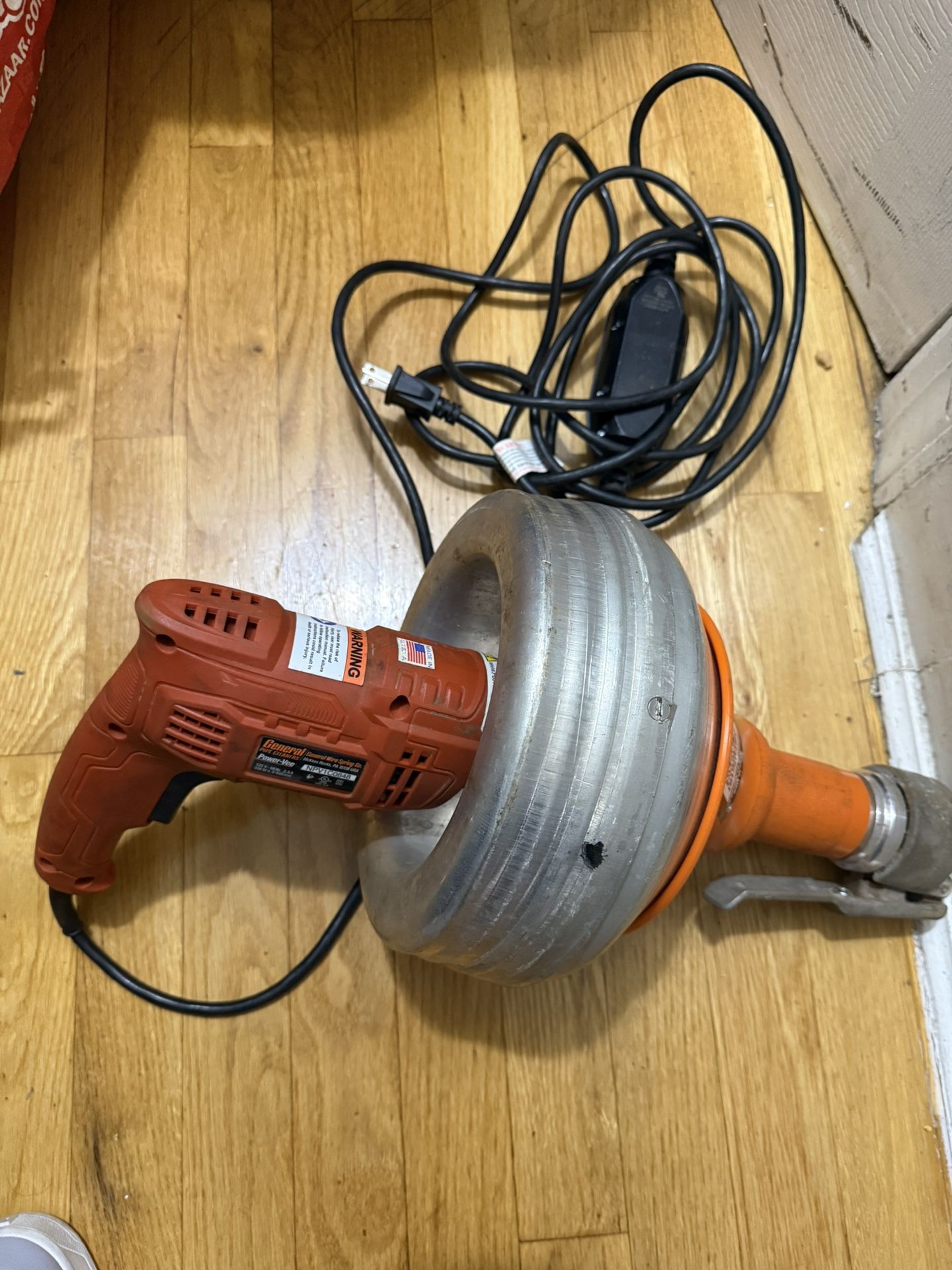 Features: General Pipe Cleaners Hand Held Power Feed w/25'x1/4" & 25'x3/8" Cables, When working under sinks or in other awkward places, the Power-VeeTM is like having an extra handJust squeeze the feed lever, and three offset rollers in the automatic feed grip the cable and drive it into the lineIt's easy to useTo feed the cable, start the Power-Vee motor and squeeze the feed lever; to retract, reverse the motor and squeezeThe Power-Vee feeds 3/8" cable at 16 feet per minuteThe Power-Vee handles 1/4" through 3/8" cables without any need for adjustmentSqueezing the feed lever brings the rollers into solid contact with the cable, with minimum effort by the operatorOur Dyna-ThrustTM bearing system helps carry the weight of the drum, significantly reducing wear on the motor shaft bearing and extending the life of the toolAlso adding to the Power-Vee's durability is the heavy-gauge stamped aluminum drumOf course the cables are Flexicore® - with an integral wire rope centerNobody makes cables like GeneralThe Power-Vee includes Quick-Change Cable Cartridges and tough left-wound Flexicore wire rope center cables.