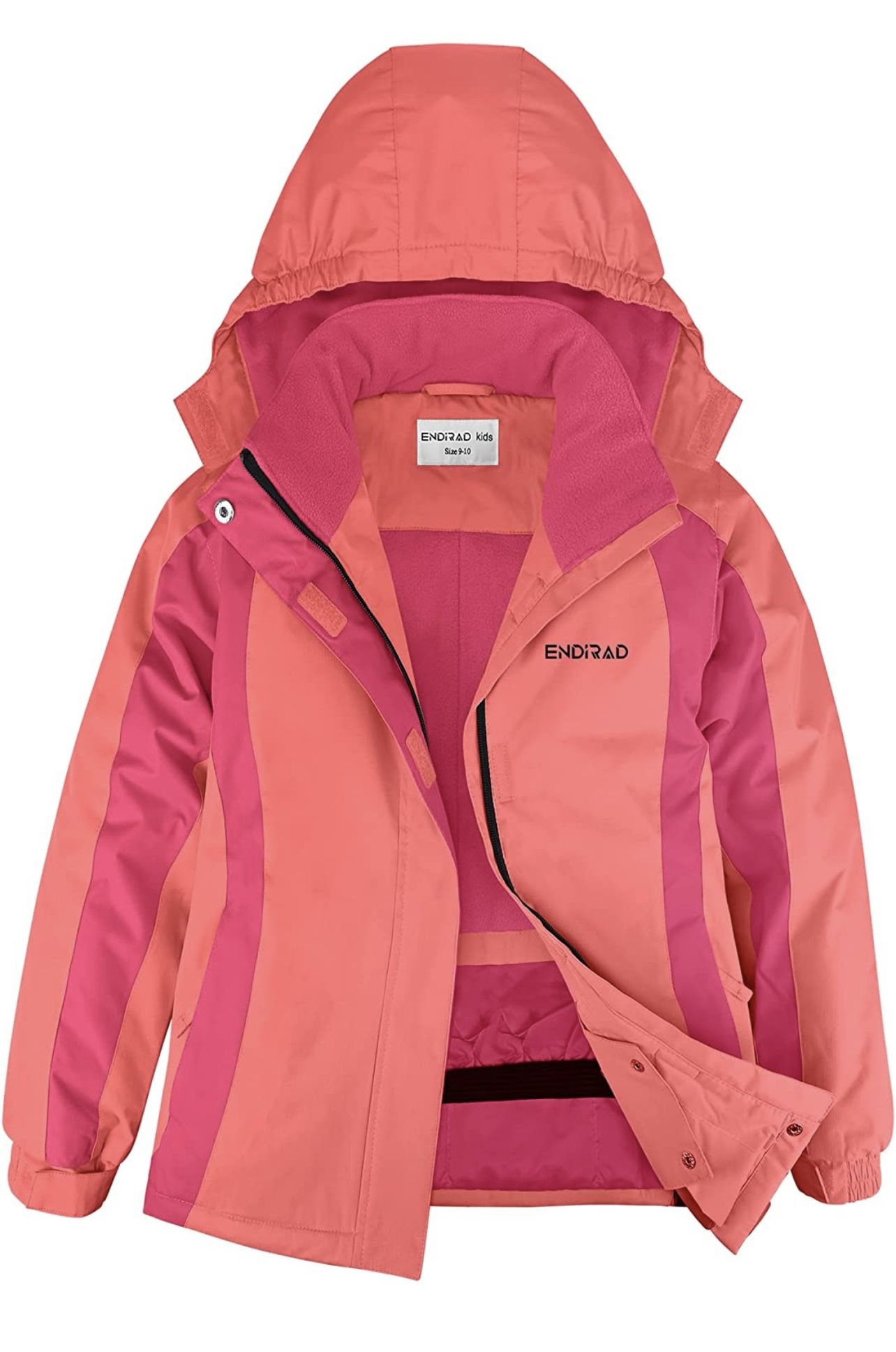 Girl's Waterproof Ski Jacket,Warm Winter Snow Coat,Hooded Fleece Outwear,Windproof RainCoat