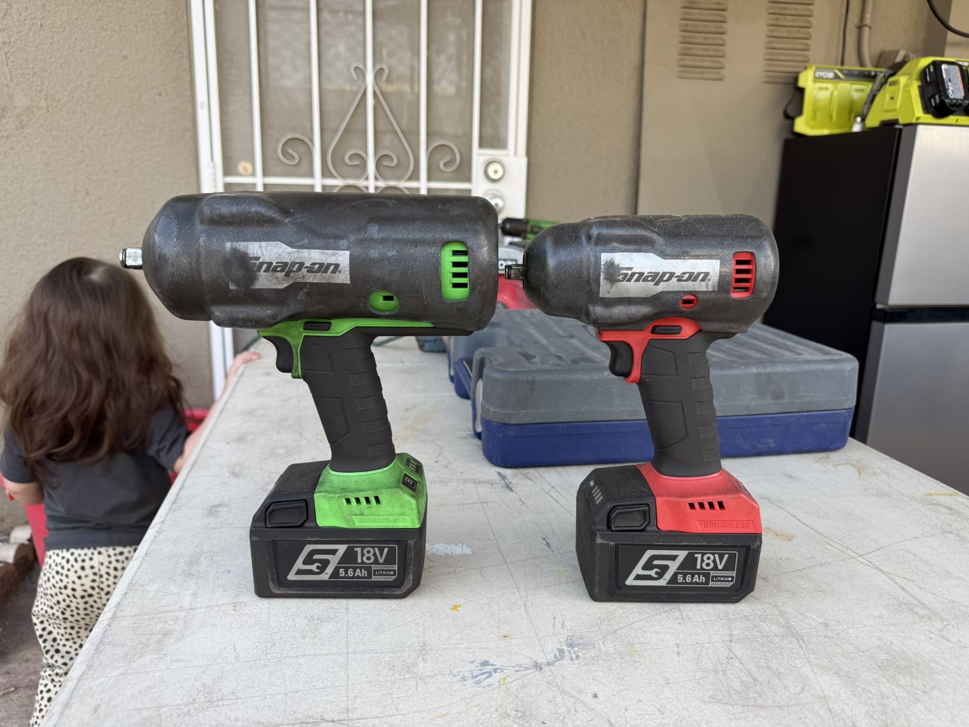 Selling snap on 1/2 and 3/8 brushless impacts. Both are 18v very strong. Both are practically new on used handful of times. Am asking 1200 OBO for both with 2 batteries and charger. Will include matching green housing for 3/8 impact