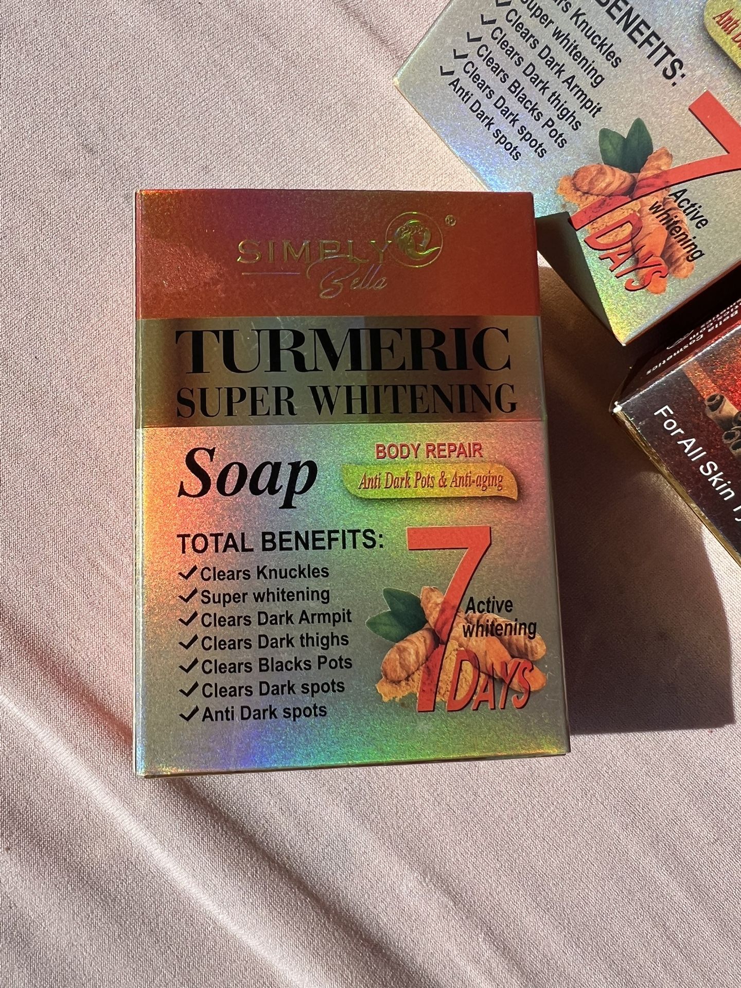 Body repair- Anti dark Pots & Anti aging An amazing soap with many benefits!!! See results in 7 days Clears knuckles Super whitening Clears dark armpits, thighs, black pots and much more