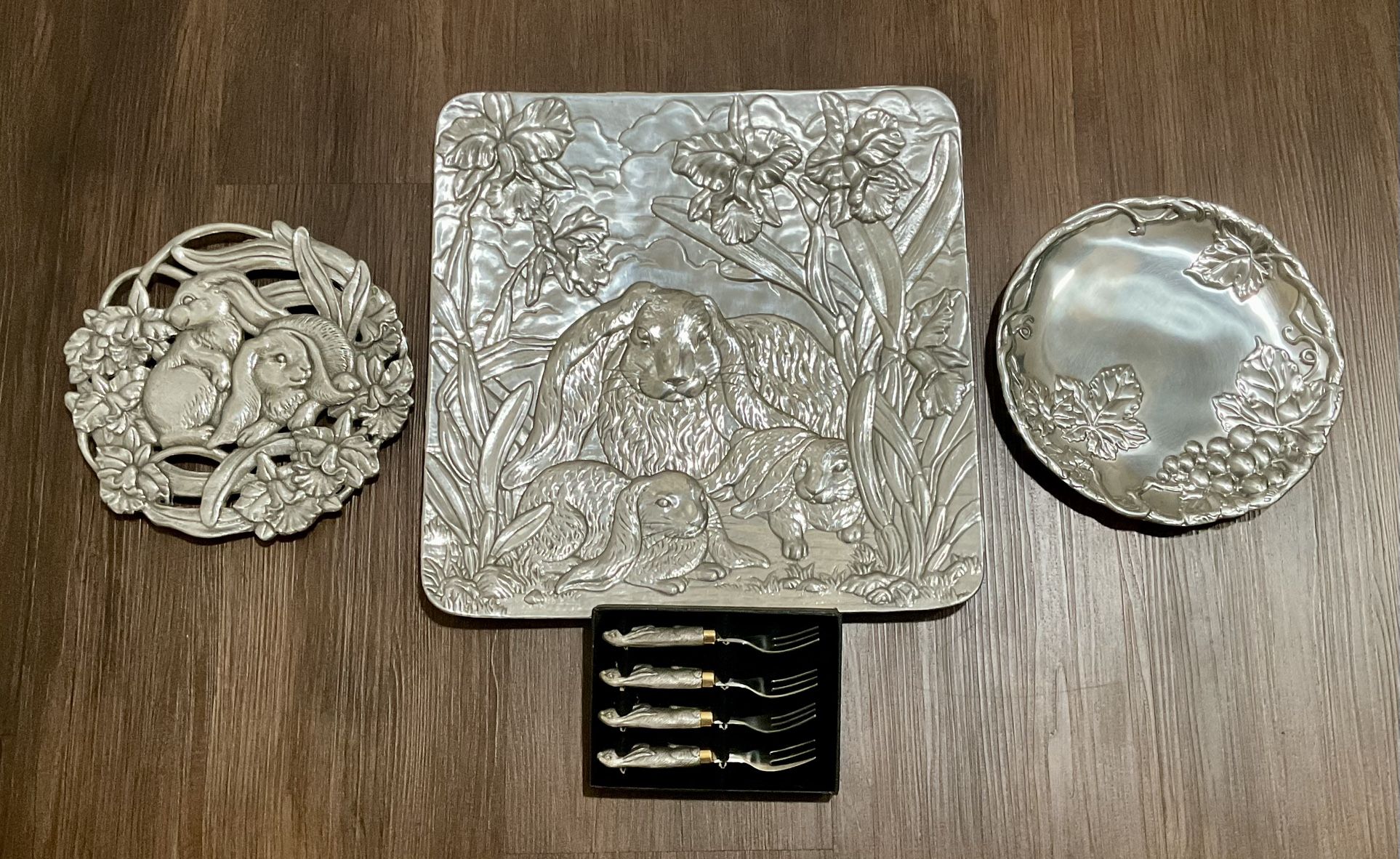 VTG Arthur Court Easter Bunny Collection -3 Platters 4- Sm Forks