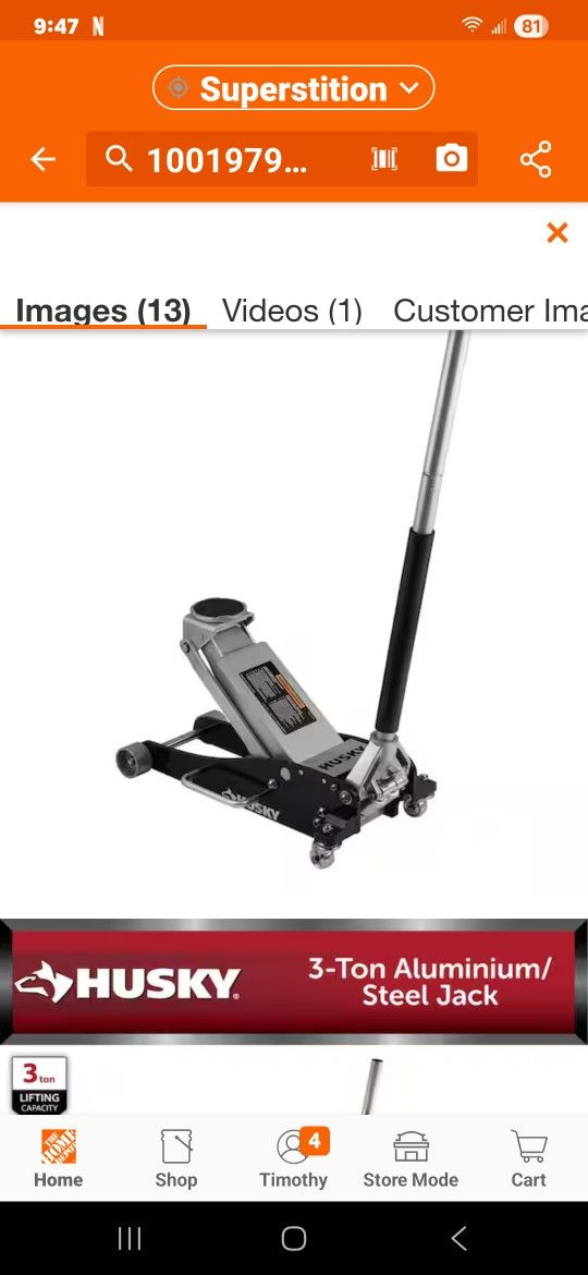 Husky 3-Ton Aluminum/Steel Floor Jack