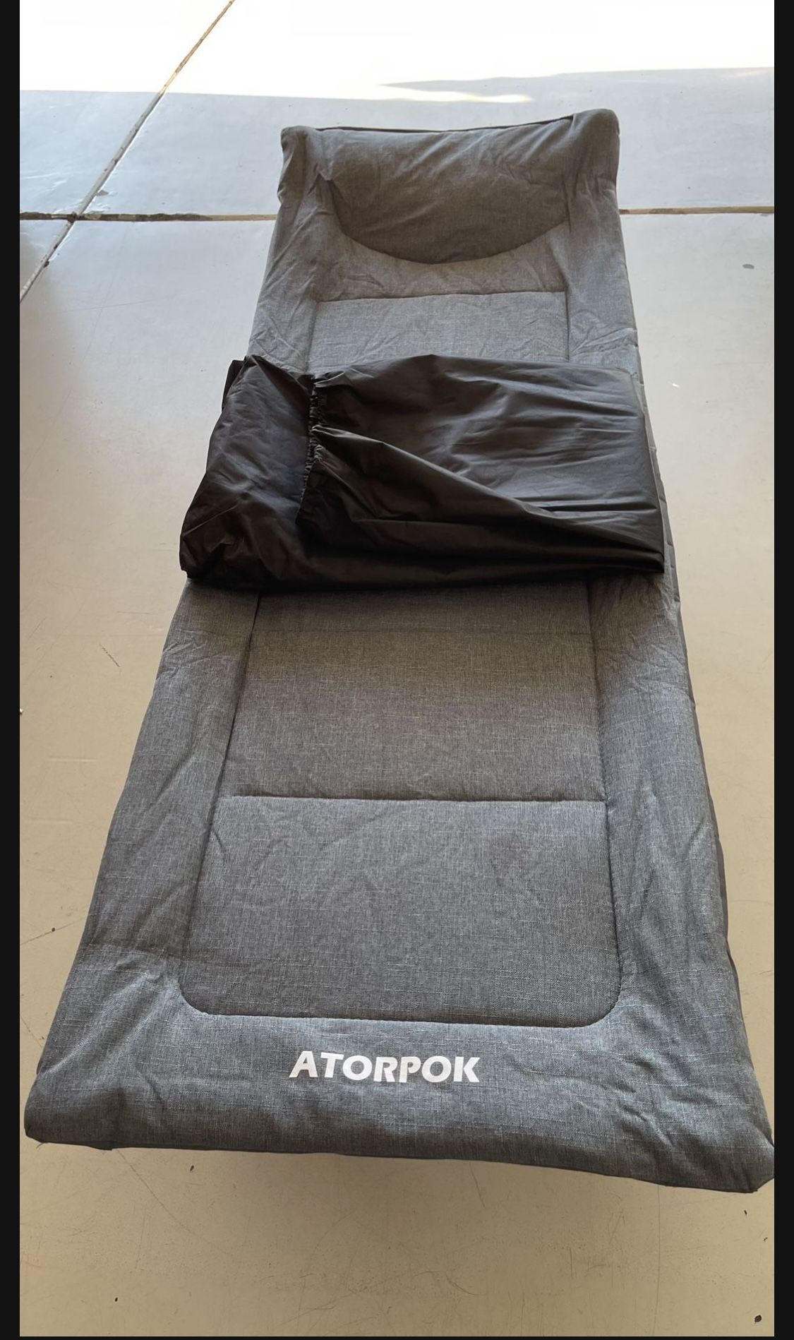 ATORPOK Camping Cot for Adults with Cushion and Pillow, Portable Folding Bed for Sleeping, Lightweight Tent cot with Carry Bag Supports 450 Ibs (Grey). New $60 each I have 2 available Pick up near Mesa and southern