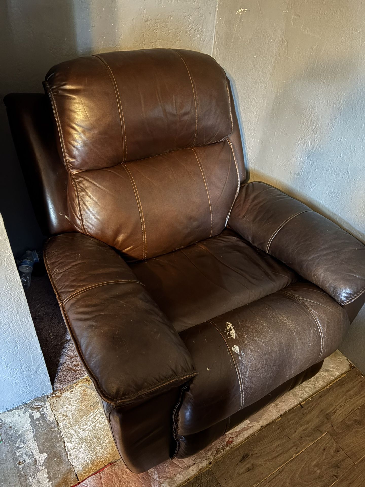 Electric recliner works and everything has a cat scratch at the leg rest has a usb om the side asking 75$ willing to negotiate or trade