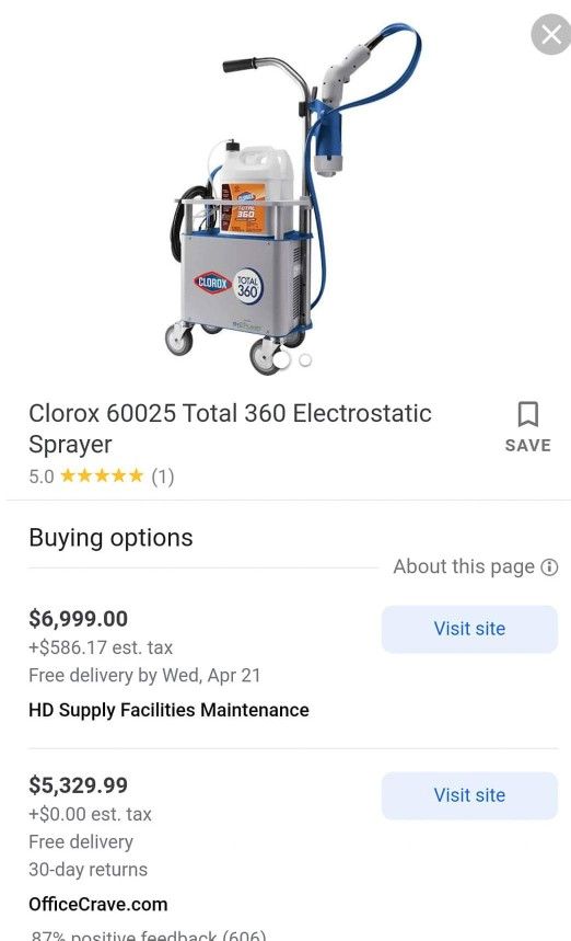 Electrostatic sprayer great for decontamination and sanitizing applications. Clorox brand, new never used