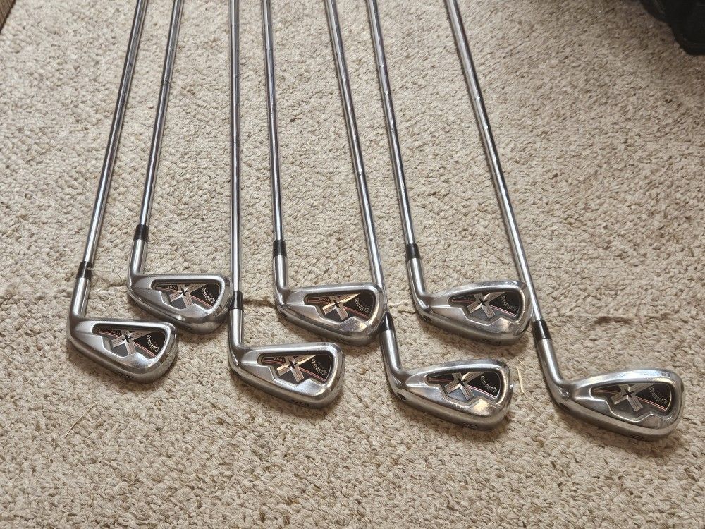 The Callaway X Tour irons are two piece forged irons that offer control and playability for mid- to low handicap golfers. The face is laser welded to the forged body. This allowed Callaway to incorporate the 360° Undercut cavity to improve forgiveness with increased perimeter weighting. This results is a very playable iron that maintains the feel you would expect from the high quality forged construction. These Irons are in good used condition. Selling for $275. Or Best Offer. Stiff Flex Dynamic Gold S300 Black Golf Pride Grips Standard Callaway X Tour Irons (4 thru PW) Callaway. Dynamic Gold. Golf Pride. Stiff Flex.