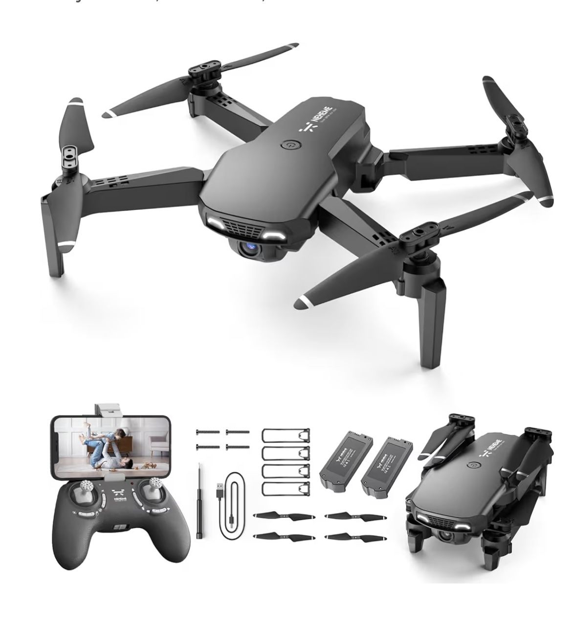 NEHEME Selfie Drone equipped with 80° adjustable 1080P HD camera, which can broaden your views and record every unforgettable moment in your life. Meanwhile, with advanced FPV real-time transmission tech, you can enjoy real-time images through App for beautiful scenery. NEHEME NH525 drone is equipped with 4 Propeller Guards to protect you from spinning propellers and ensure the drone's propellers from the collision; 2 intelligent batteries for up to 26 minutes ultra-long flight time. Besides, it also can reach up to 100m control distance giving you more extensive flight experience.