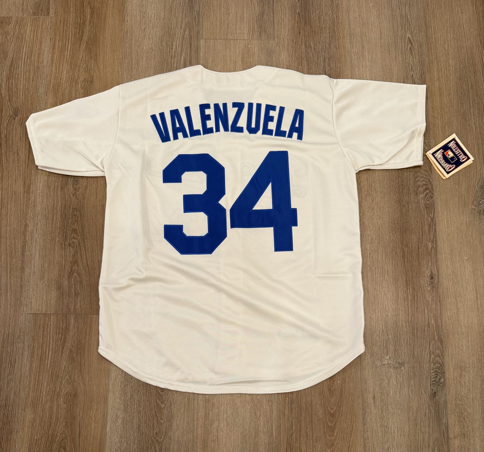 Dodgers Cream Jersey Men Valenzuela 34 Vintage (NWT
