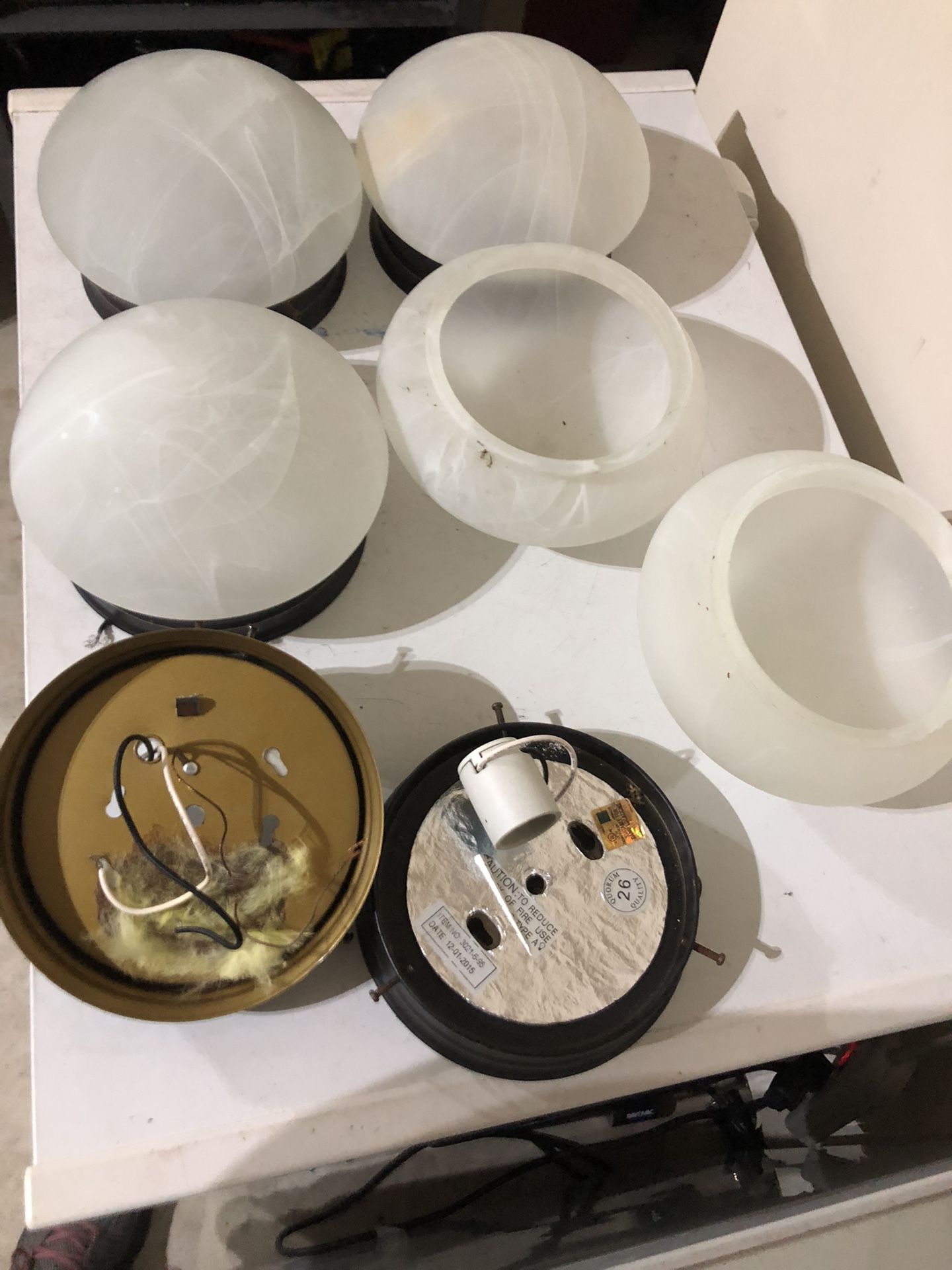 5 decorative interior lights. 1 bulb unit. Wires to normal 110 home wiring.