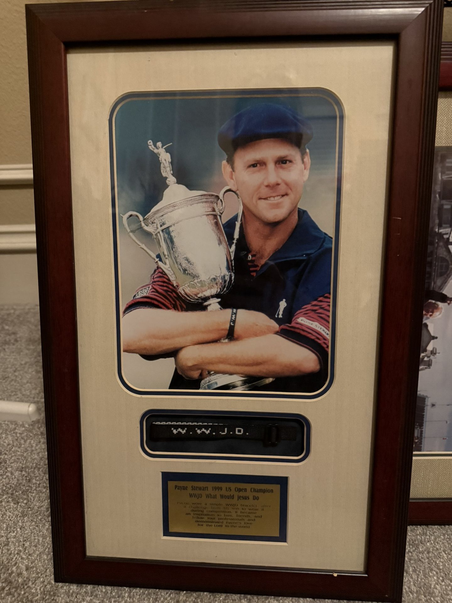 framed photograph commemorating Arnold Palmer's final British Open appearance at St. Andrews in 1995