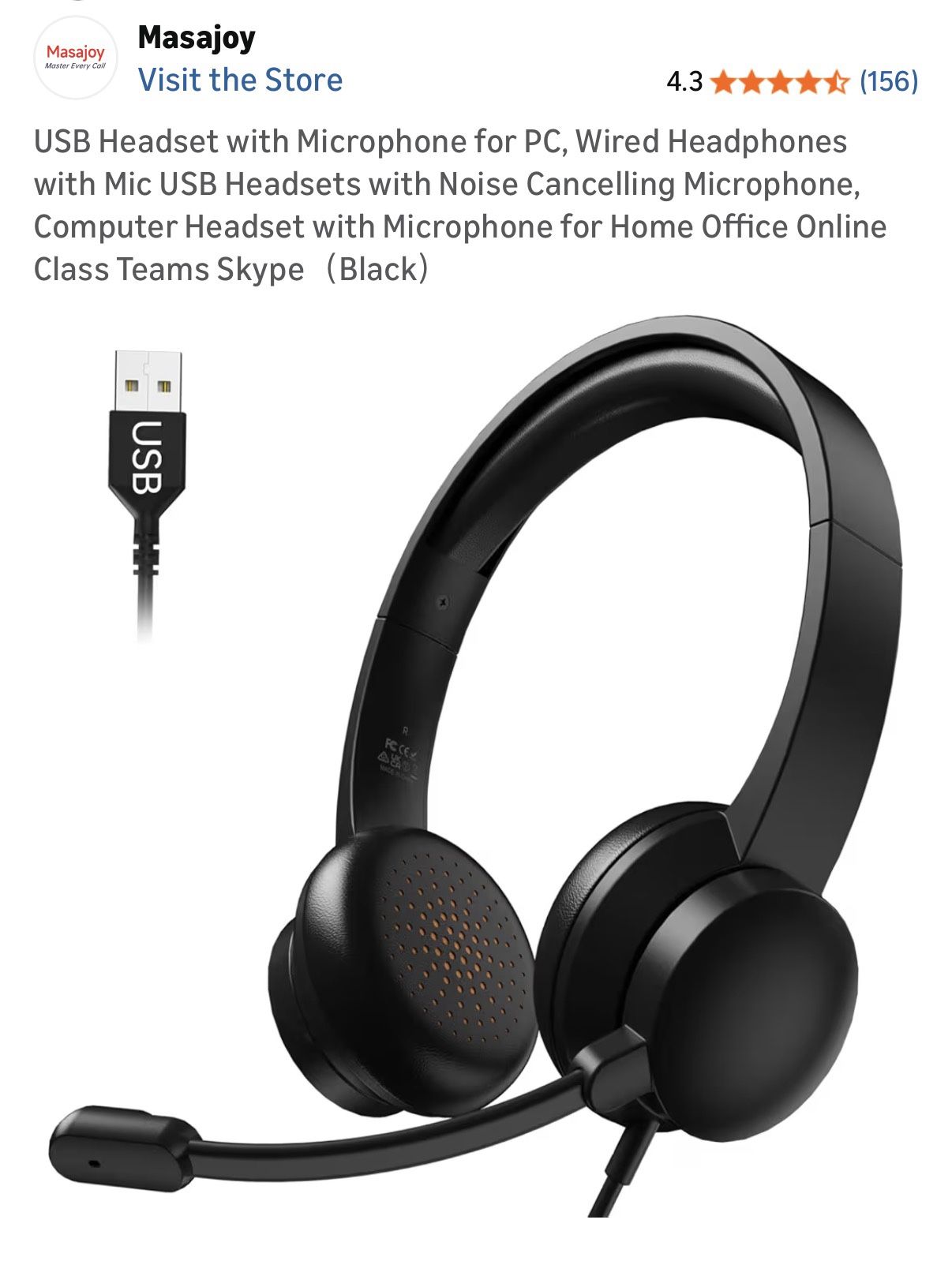 New in box. Masajoy USB Headset With Microphone For PC, Wired Headphones With Mic USB Headsets With Noise Cancelling Microphone, Computer Headset With Microphone For Home Office Online Class Teams Skype?Black?